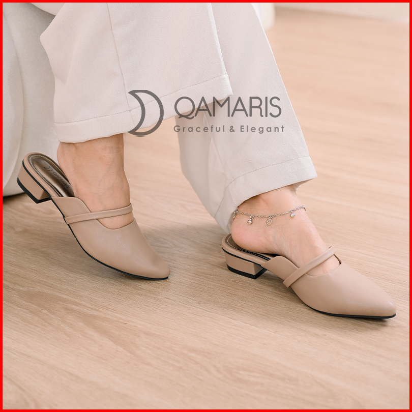Qamaris Sepatu Sandal Mules Wanita Heels 3cm Model Kekinian Cocok Untuk Kerja Hangout