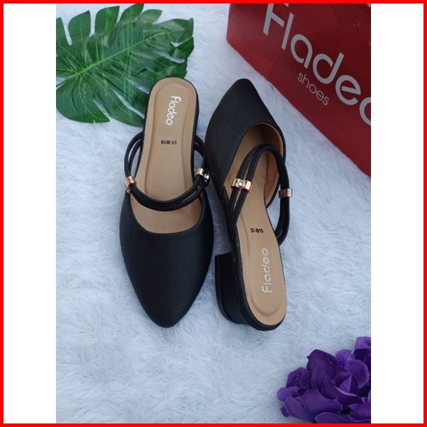 Sandal Sepatu Selop Fl Krem Hitam Hak 3cm