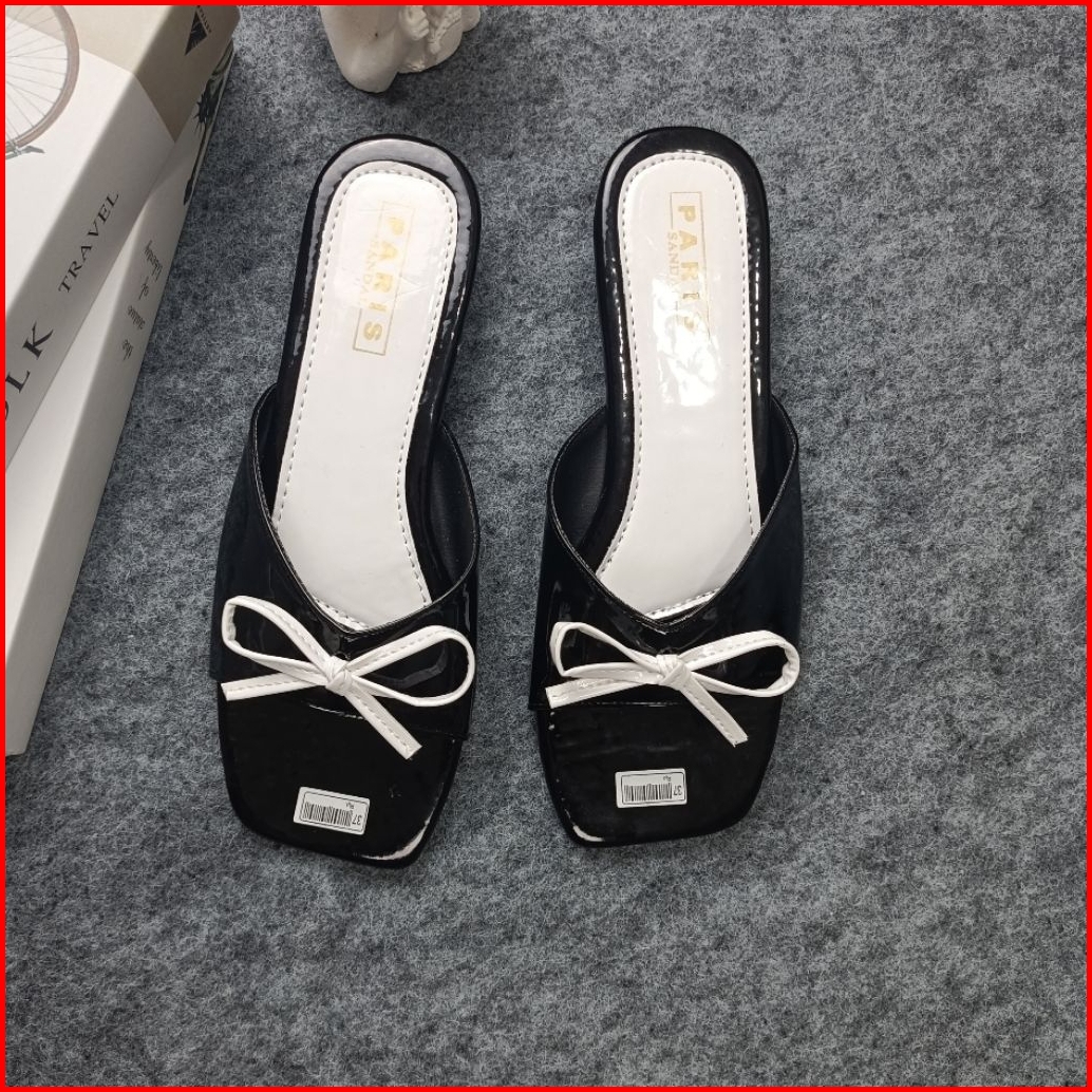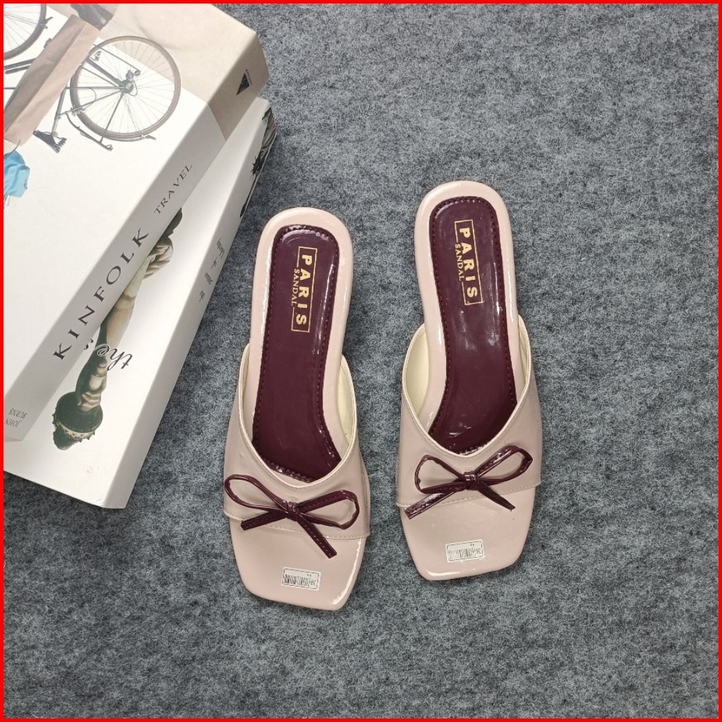 Parissandal Shoes - Sandal Teplek Wanita Glossy Slop Tali Pita Kombinasi Casual Kekinian