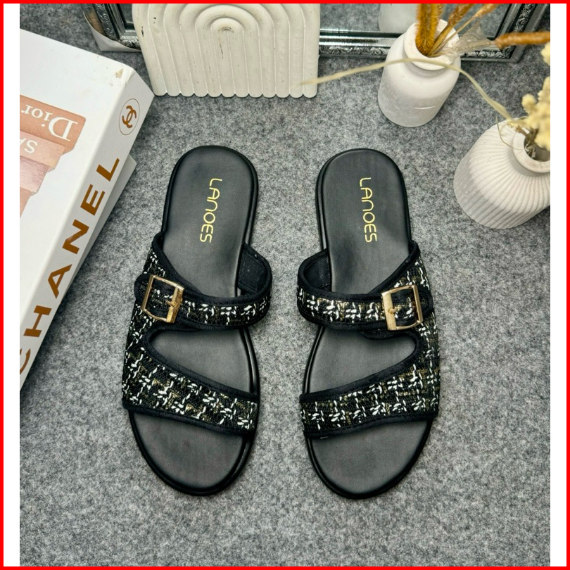 Lanoes Sandal Sendal Platform Wanita Rajut Premium Korean Style Anti Slip Terbaru Kekinian 2025