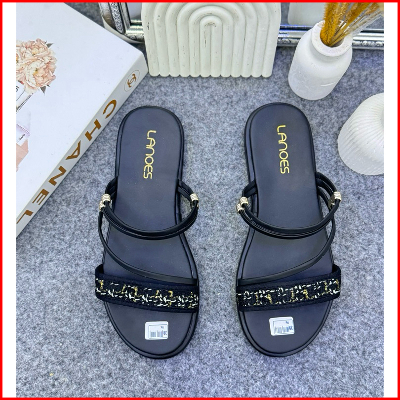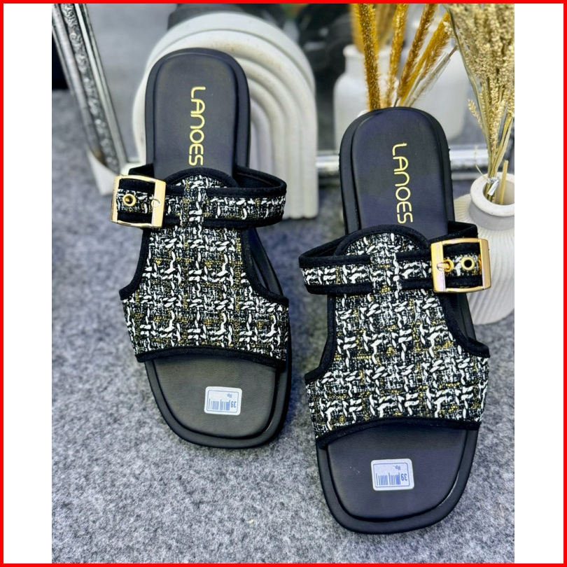 Lanoes Sandal Platform Wanita Korean Style Rajut Kekinian Terbaru Anti Slip
