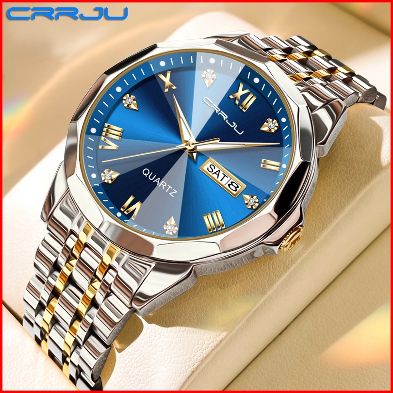 Crrju Jam Tangan Pria Anti Air Original Rantai Keren Terbaru Mewah 2024 Putih Luxury Stainless Steel Watch Men