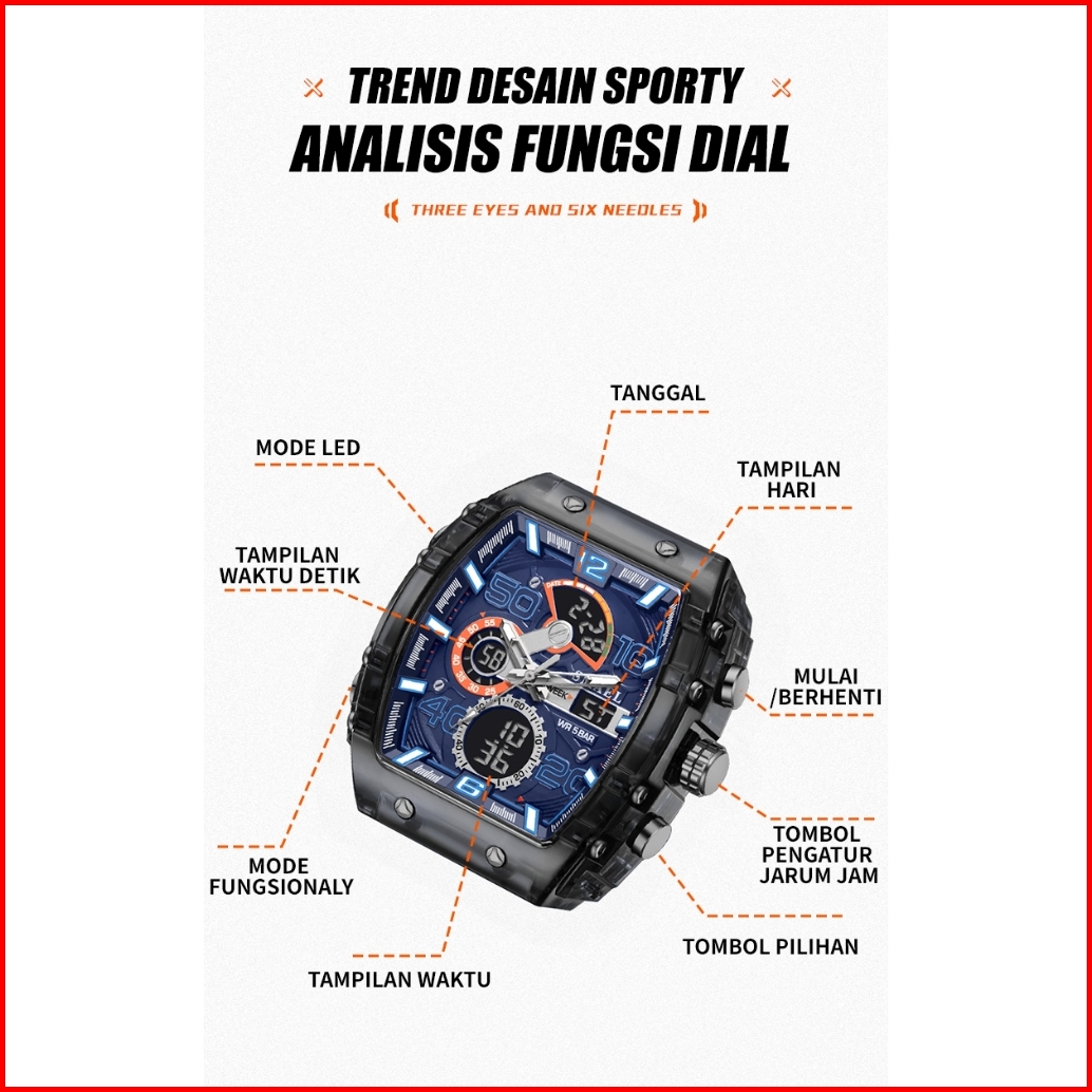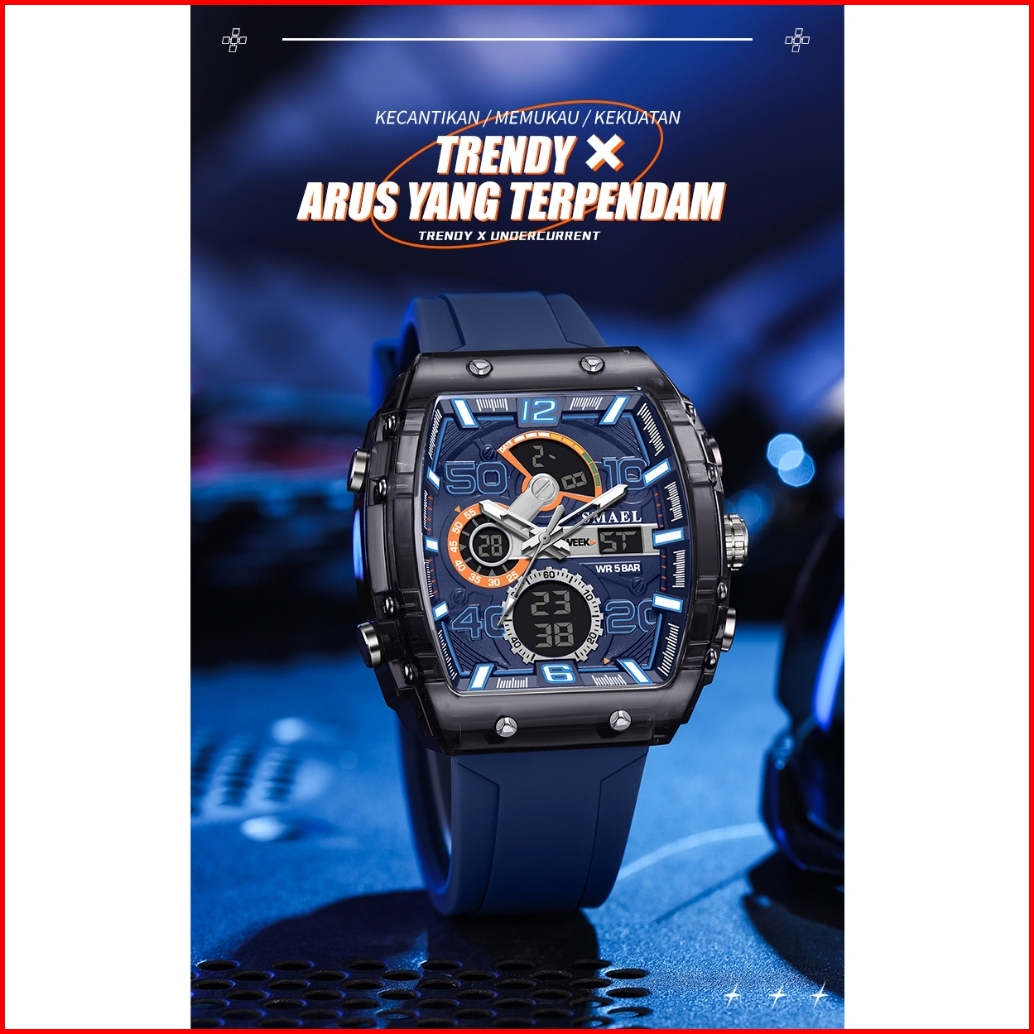 Smael 8109 Baru Trendi Seratus Unik Pria Asli Jam Alarm Multifungsi Besar Multifungsi Jam Tangan Tahan Air Led Jam Tanga