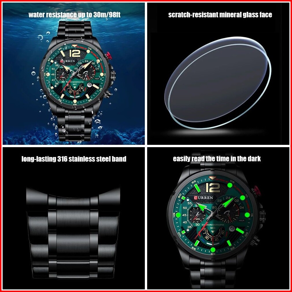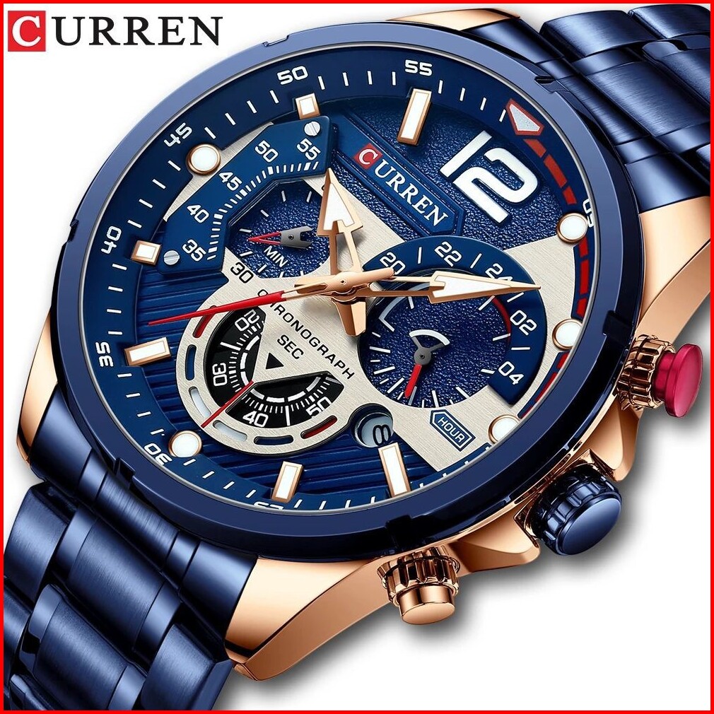 Curren 8395 Jam Tangan Pria Analog Stainless Steel Chronograph Aktif Luminous Hand Currenos