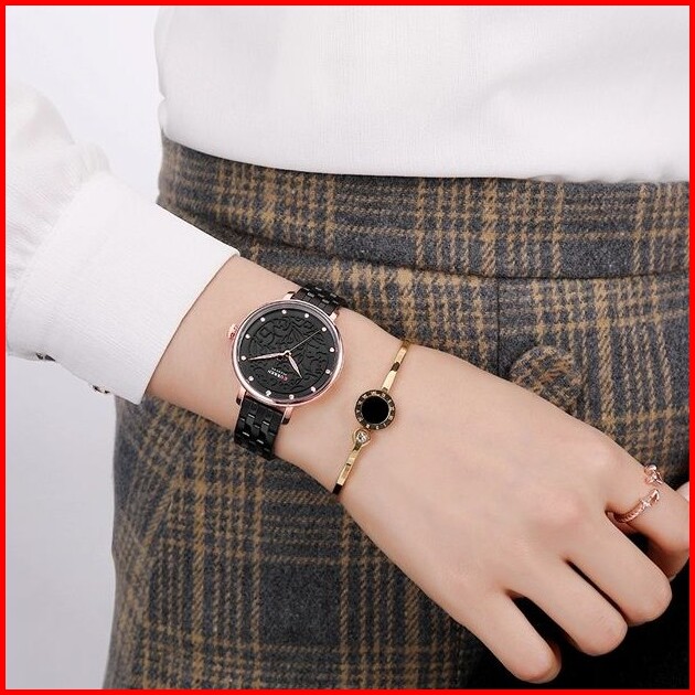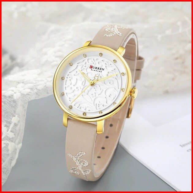 Curren 9046 Jam Tangan Wanita Analog Tali Kulit Motif Vintage Currenos