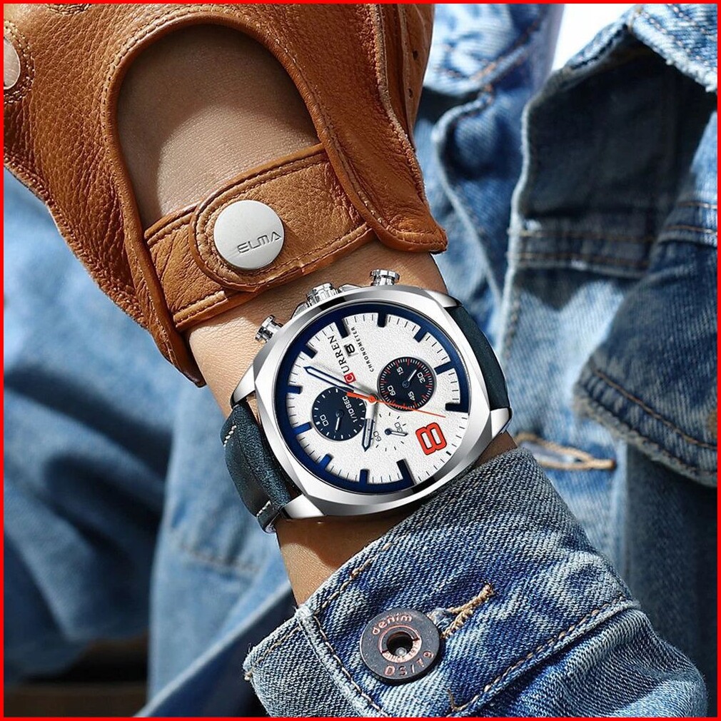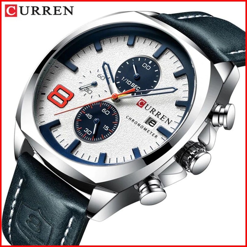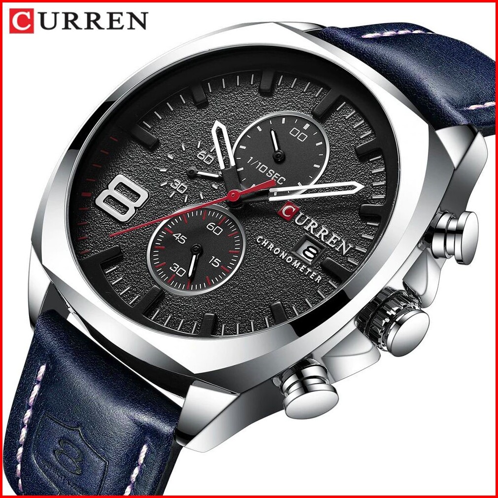 Curren 8324 Jam Tangan Pria Analog Tali Kulit Chronograph Aktif Currenos