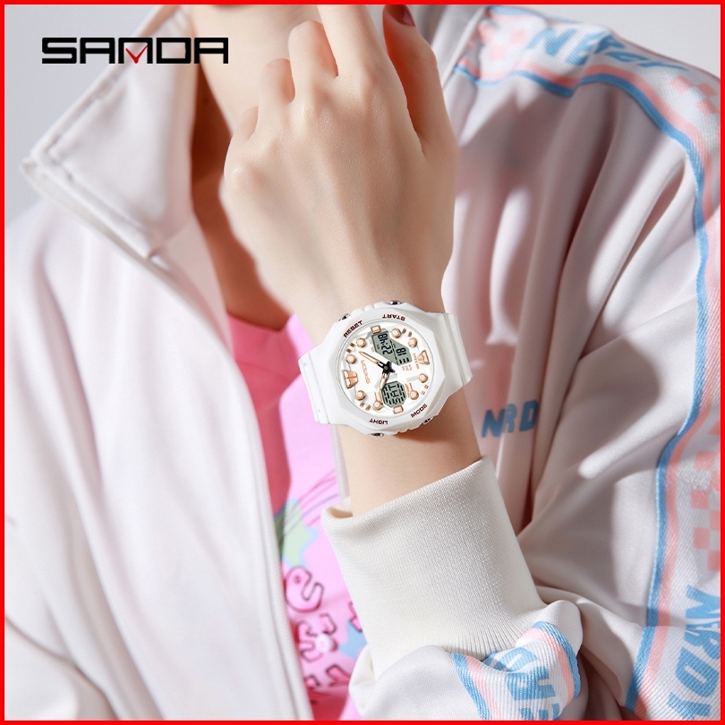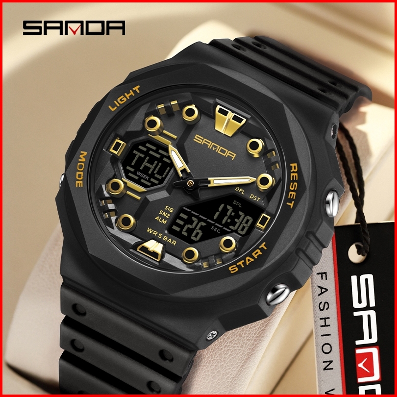 Sanda 6200 Jam Tangan Pria Wanita Digital Analog Sport El Backlight Tali Rubber Anti Air Currenos