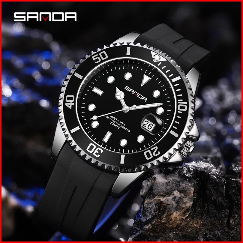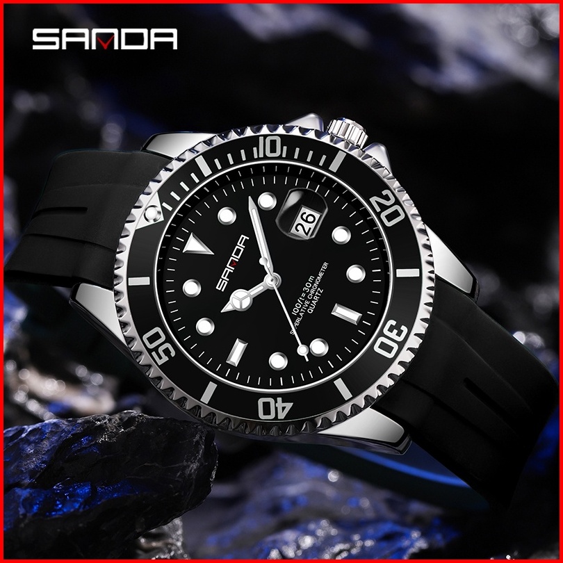 Sanda 7018 Jam Tangan Pria Analog Chronograph Luminous Display Tali Silicone Currenos