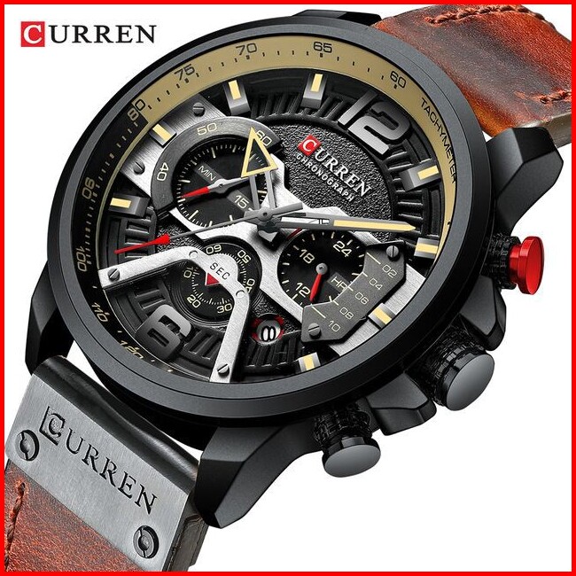 Curren 8329 Jam Tangan Pria Analog Tali Kulit Chronograph Aktif Currenos