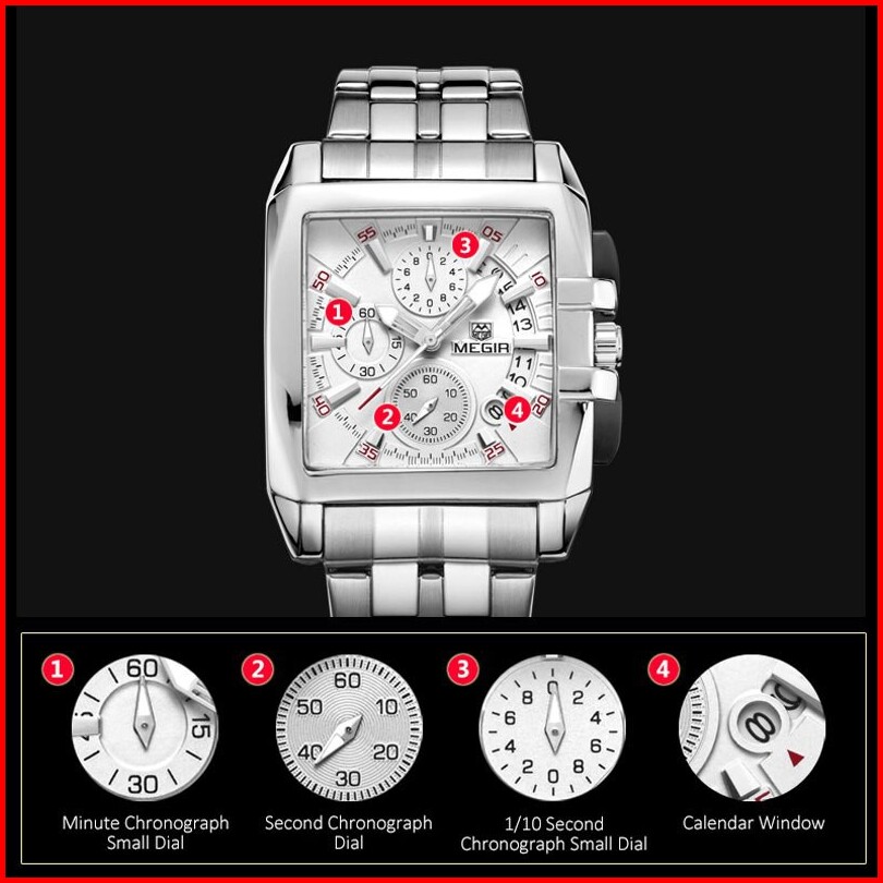 Megir 2018 Jam Tangan Pria Analog Chronograph Aktif Stainless Steel Luminous Currenos