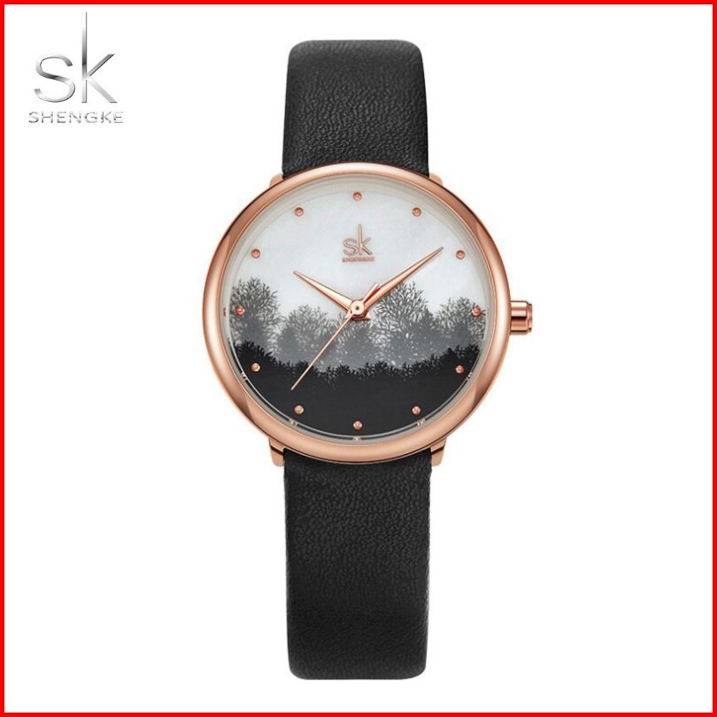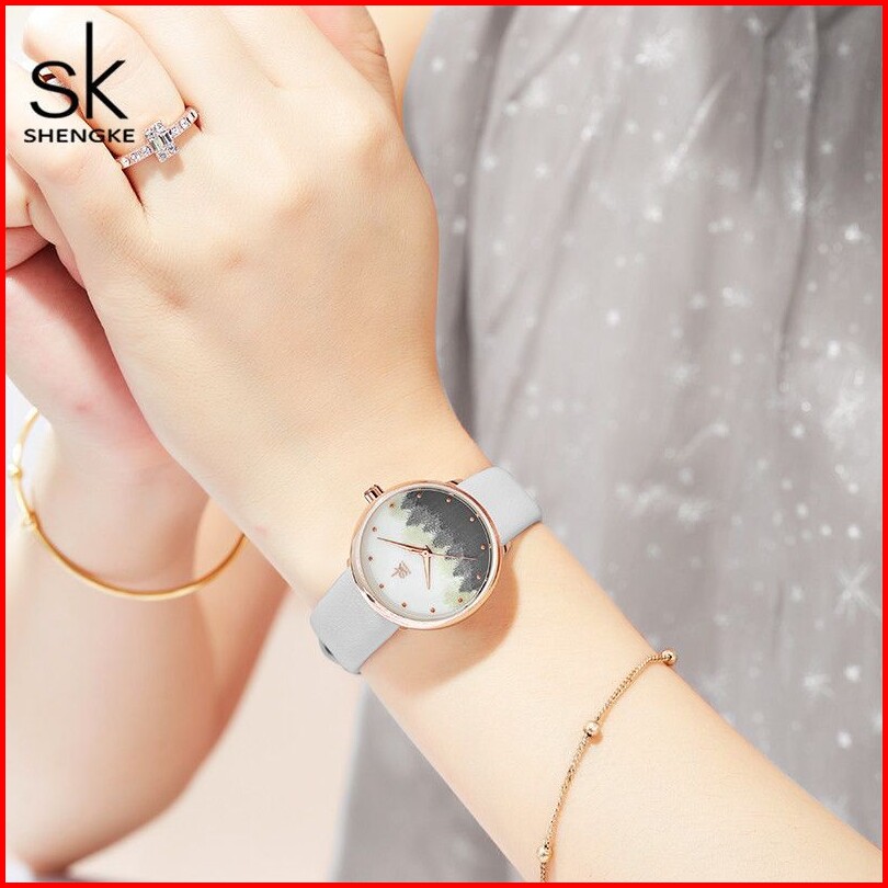 Shengke 9020 Jam Tangan Wanita Analog Tali Kulit Quartz Simple Casual Korean Design Currenos