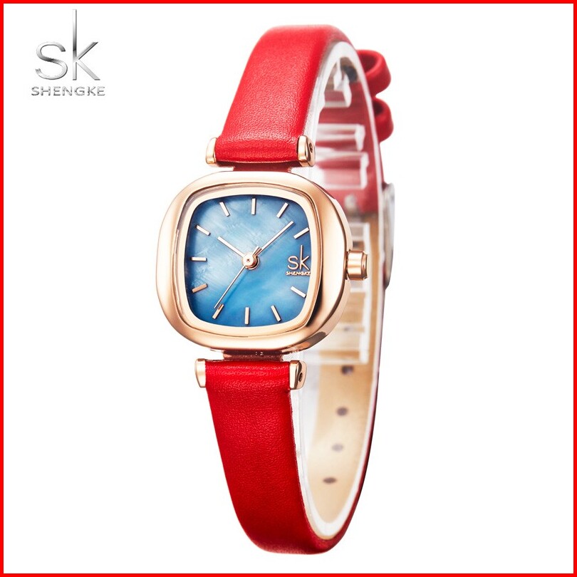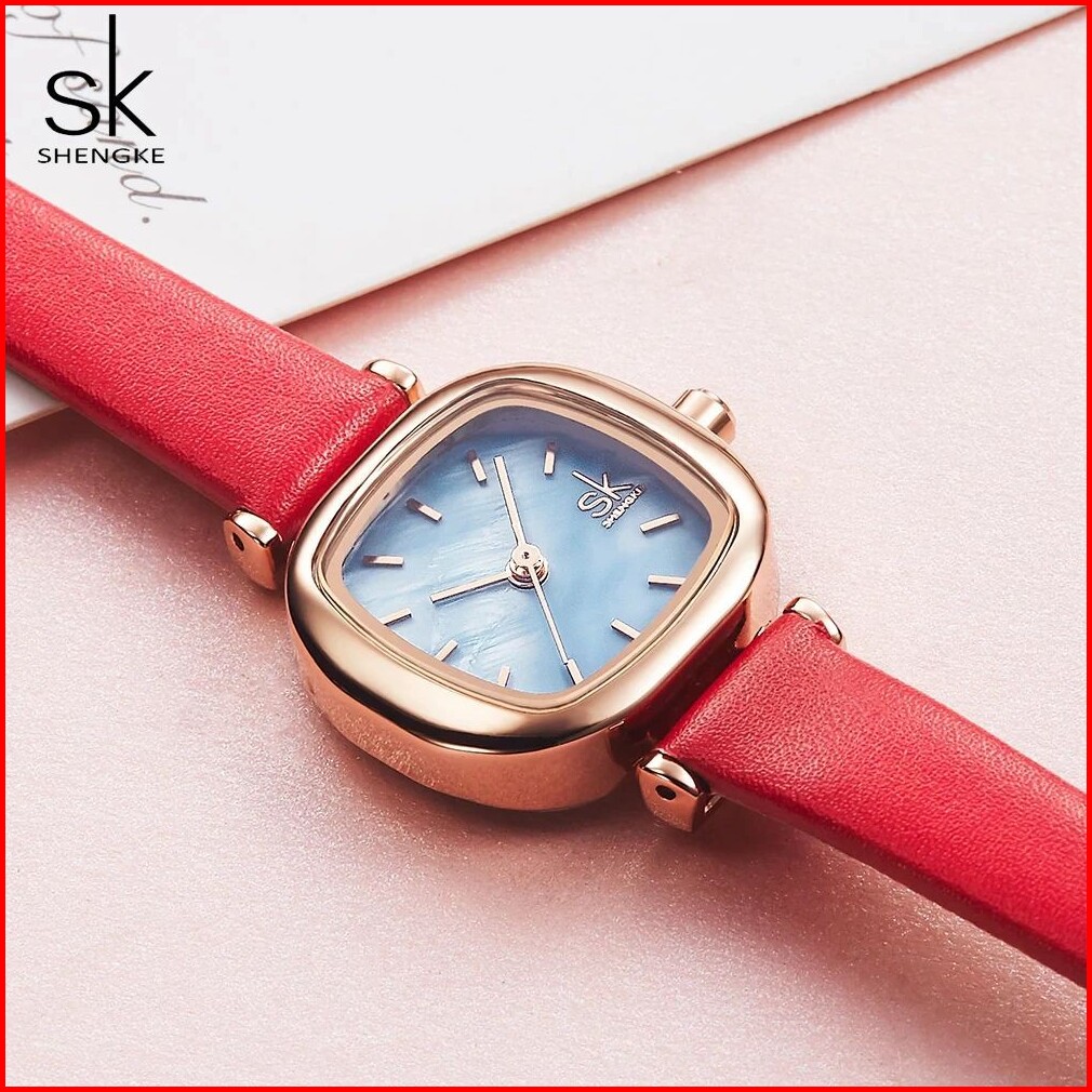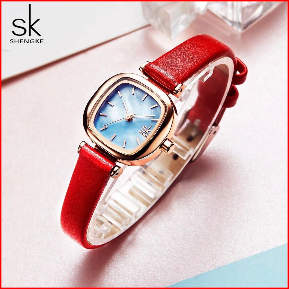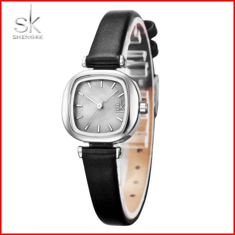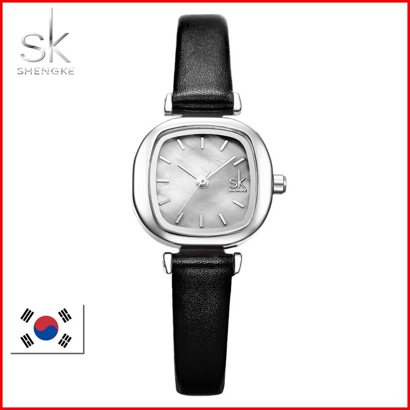 Shengke 8052 Jam Tangan Wanita Analog Tali Kulit Pearl Shell Korean Design Currenos