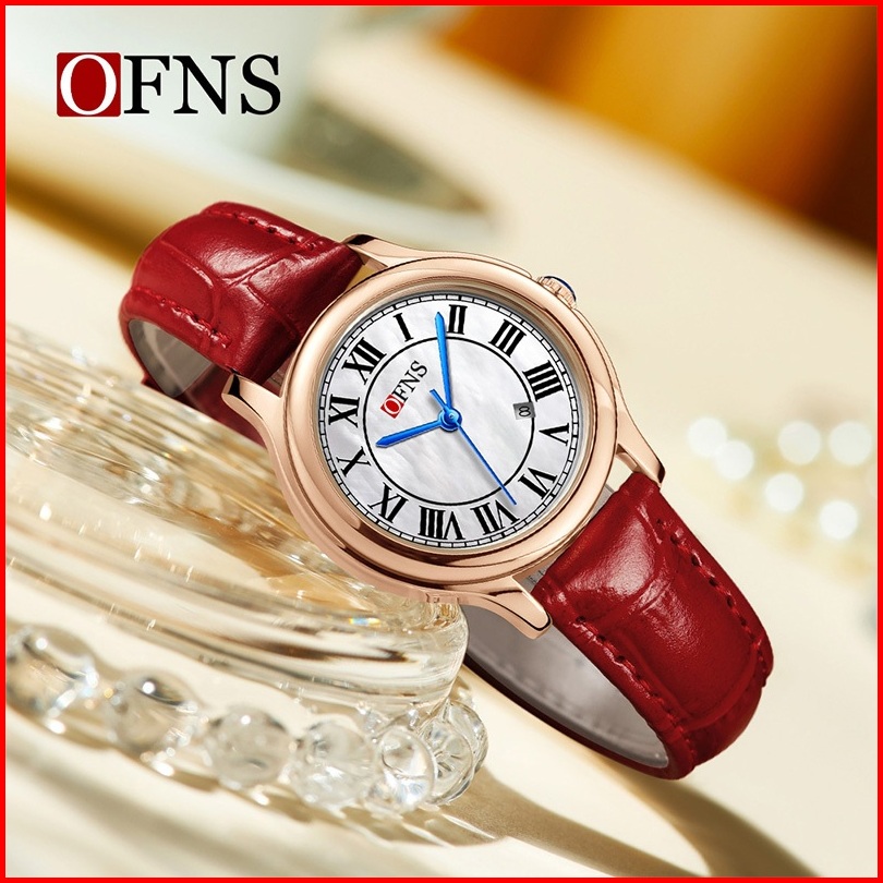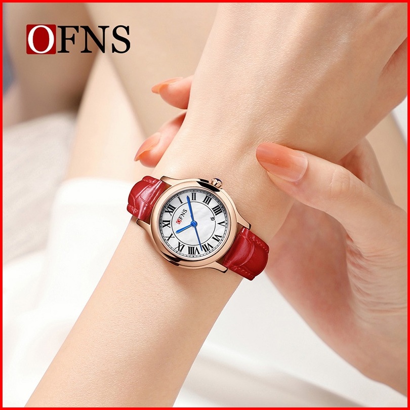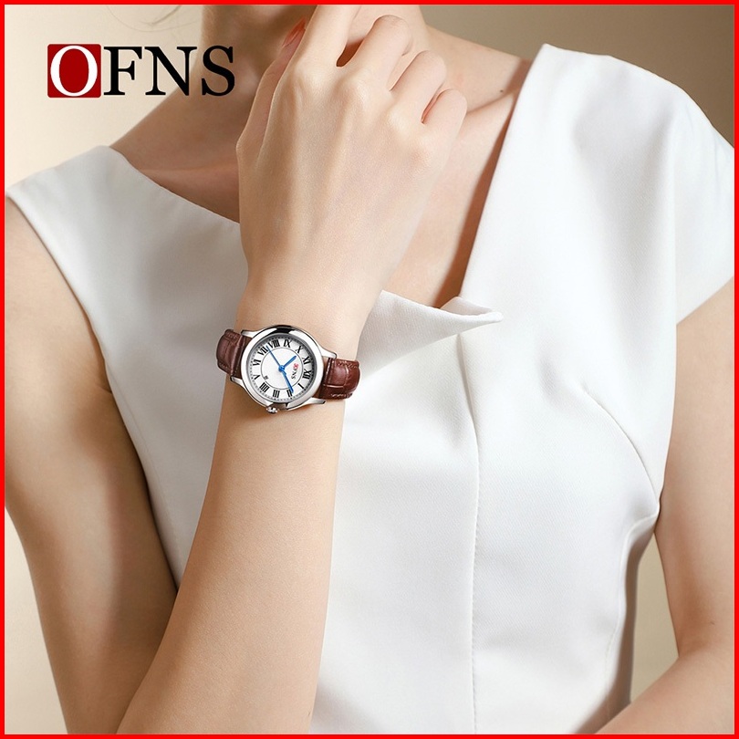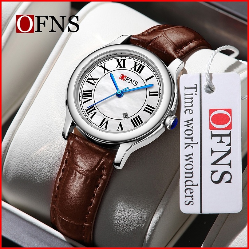 Jam Tangan Wanita Analog Ofns 1551 Retro Style Tali Kulit Quartz Korean Fashion Currenos