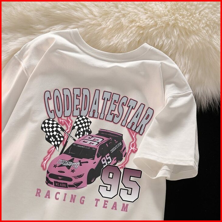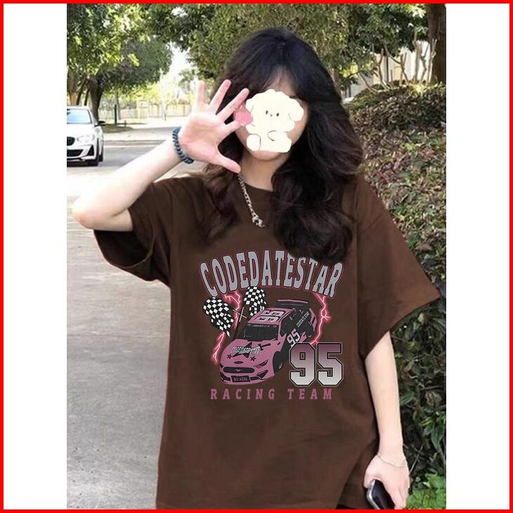 Po Floret T Shirt Oversize Lengan Pendek Kaos Codeatestar Car Katun Murni Korean Style Wanita Top