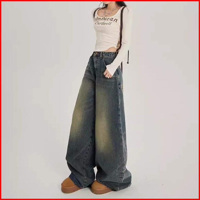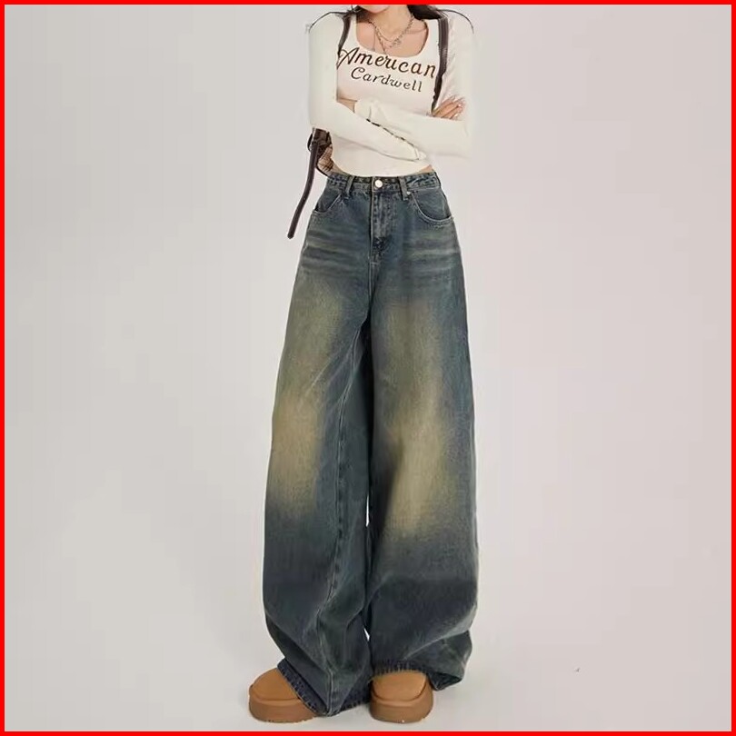 Jumbo Size Baggy Jeans Wanita Pinggang Tinggi Jeans Retro Longgar Korean Celana Panjang Denim