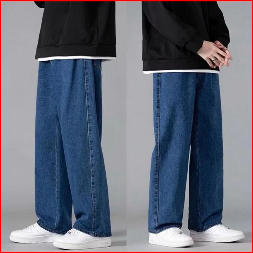 Celana Baggy Jeans Pria Oversize Loose Blue Straight Kulot Boyfriend Pants Celana Jeans Pria