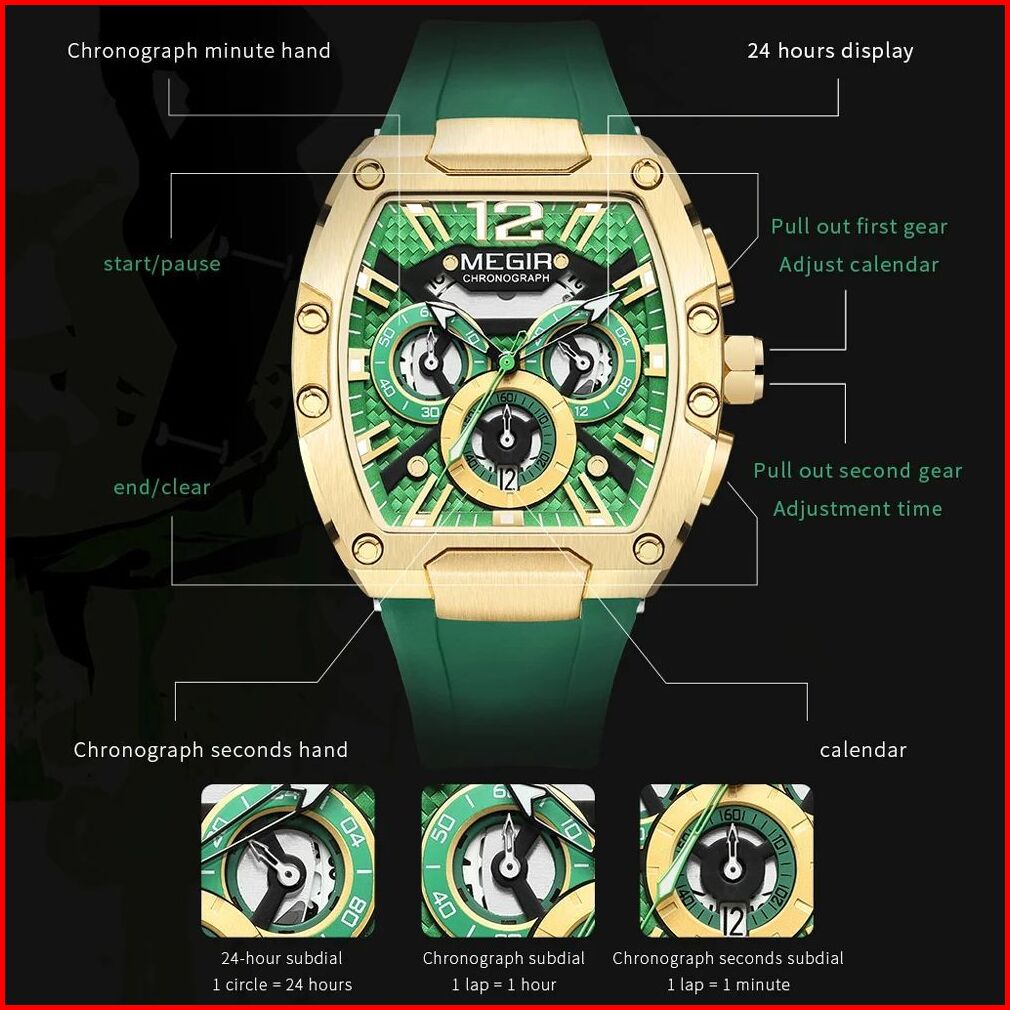 Megir 8112 Jam Tangan Pria Analog Chronograph Luminous Display Tali Silicone Currenos