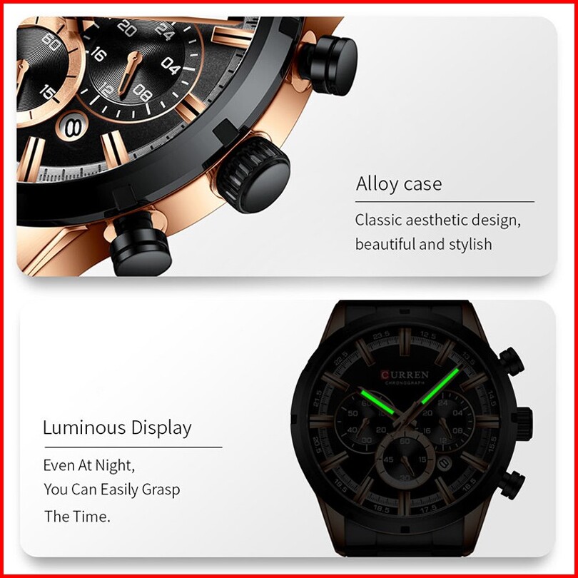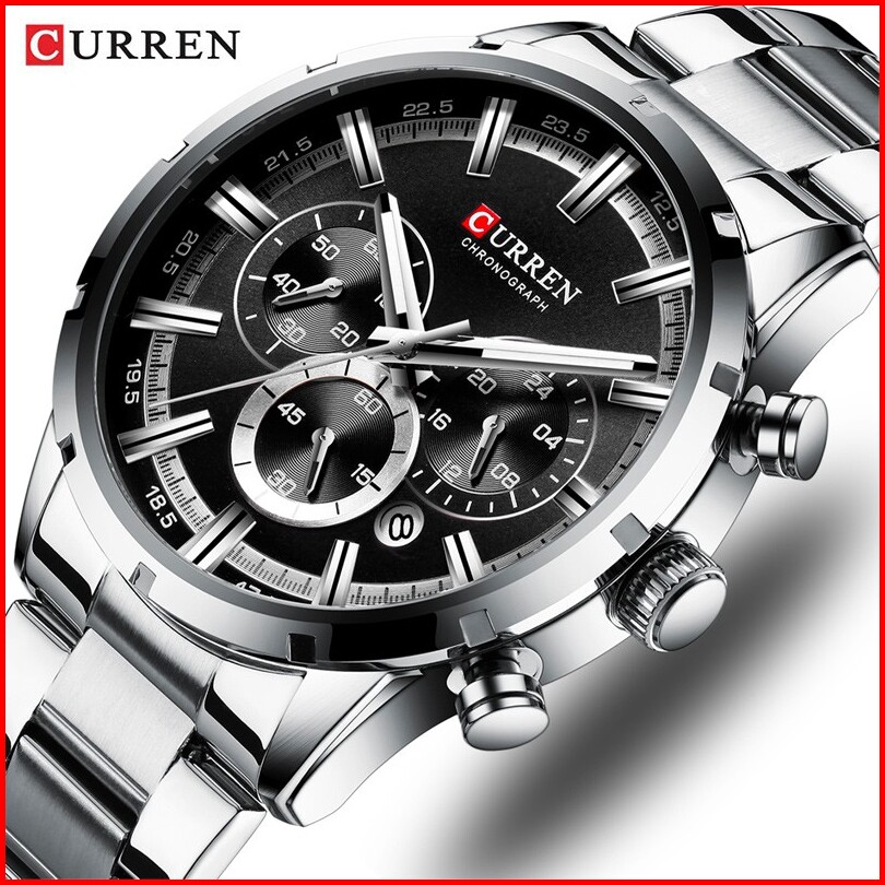 Curren 8355 Jam Tangan Pria Analog Stainless Steel Chronograph Aktif Luminous Hand Currenos