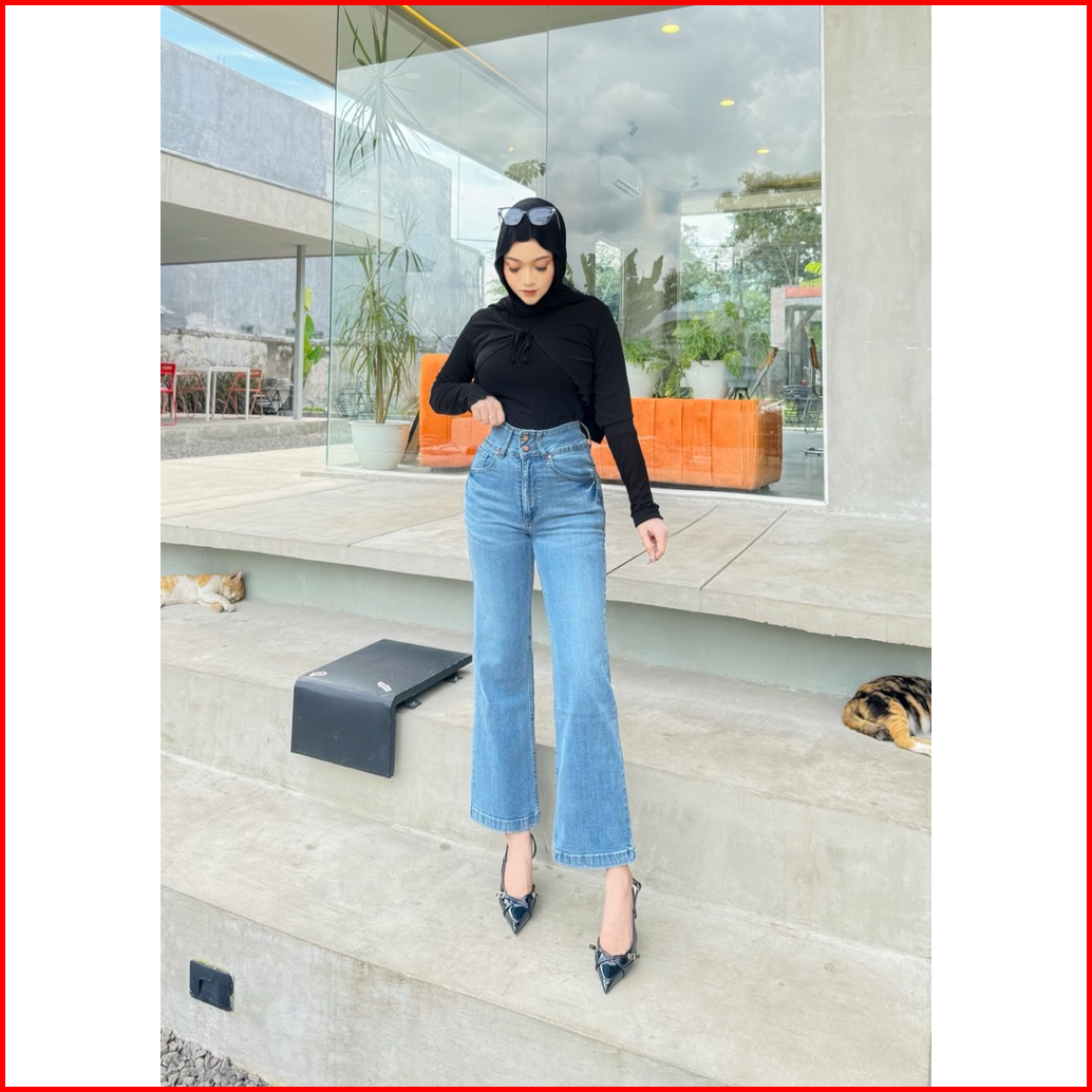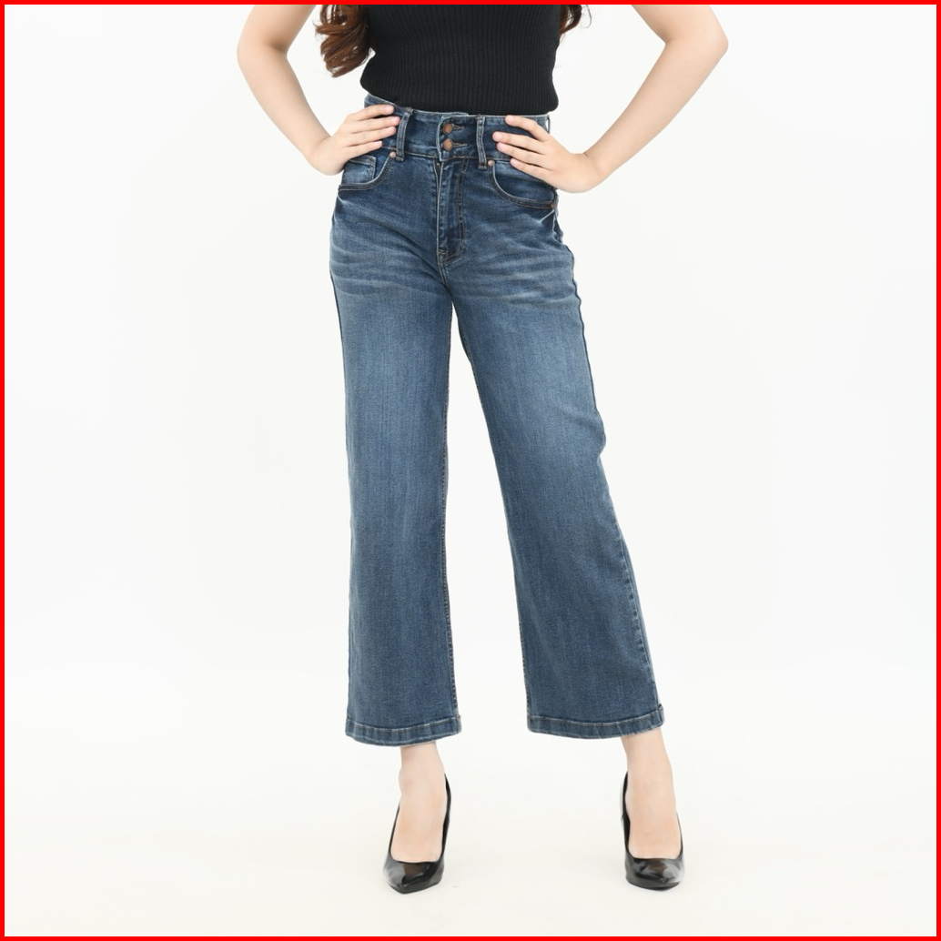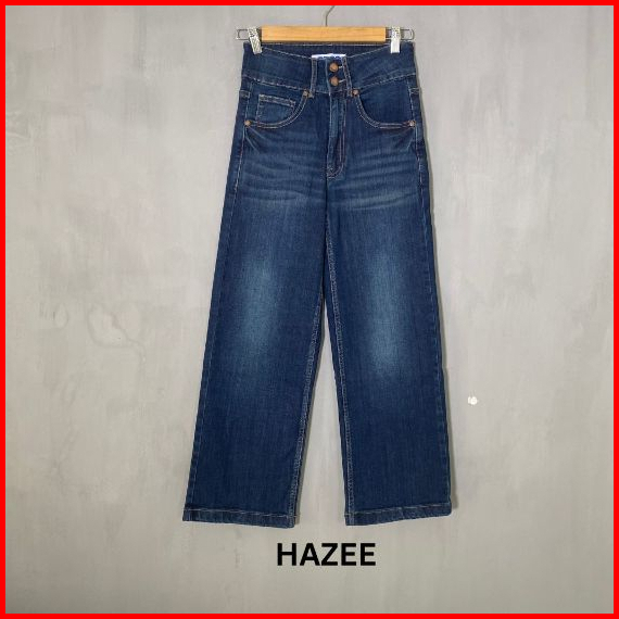 Hazee - Naura Celana Jeans Wanita Kulot Highwaist Kancing 2 Bahan Melar Premium Denim