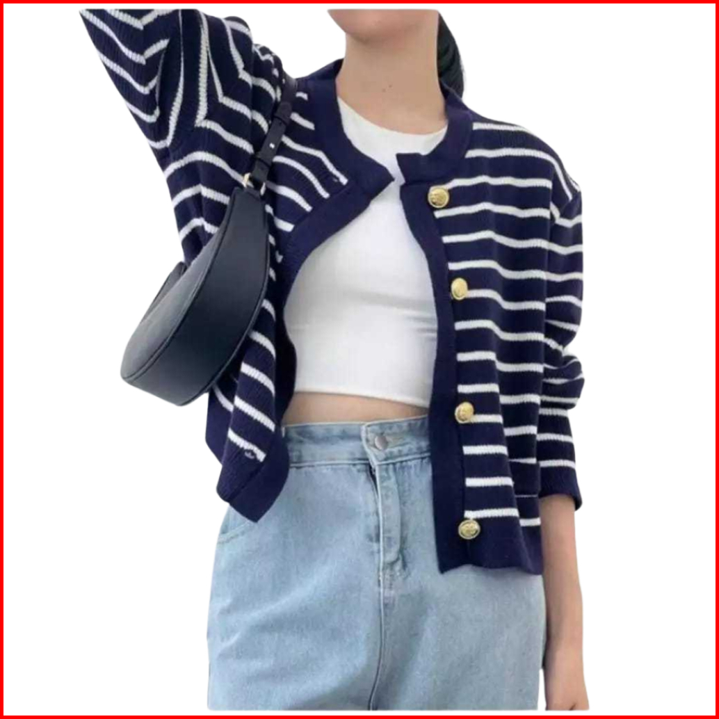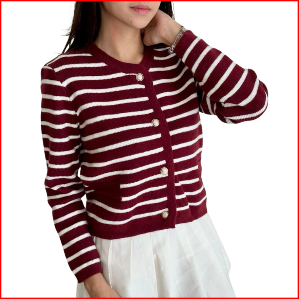 Lalisa Stripes Knit Cardigan Cardigan Stripe Premium Rajut Katun