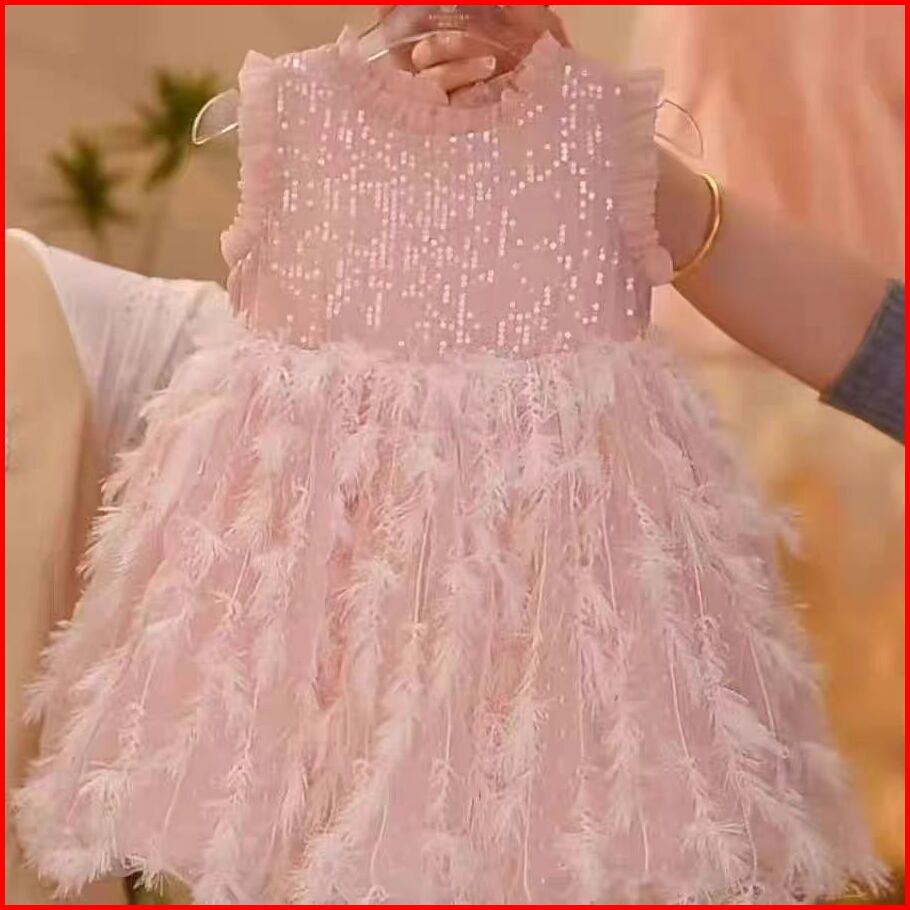 Gaun Anak Perempuan Dress Mesh Anak Bengkak Yang Nyaman Dan Bernapas Gaun Bulu Anak-anak Usia2-7thn