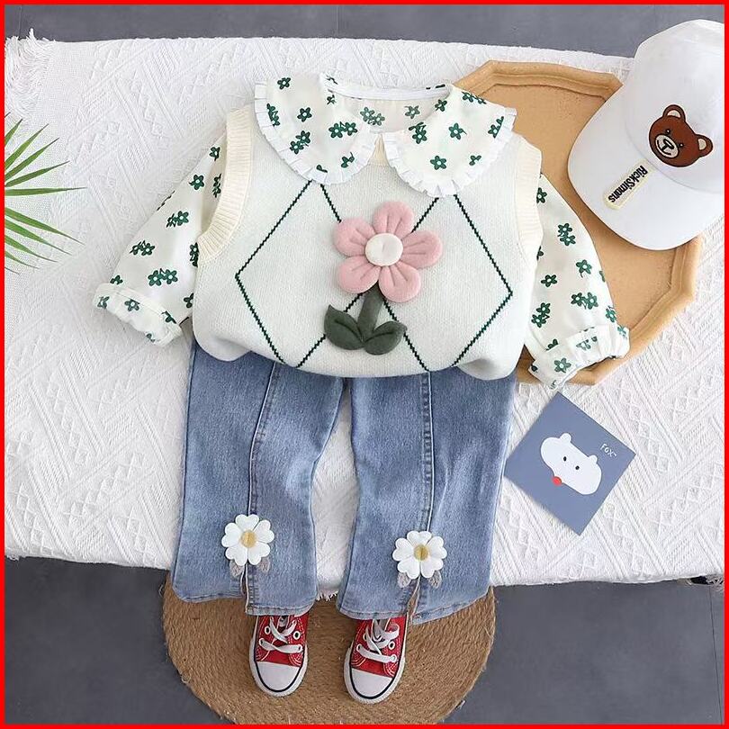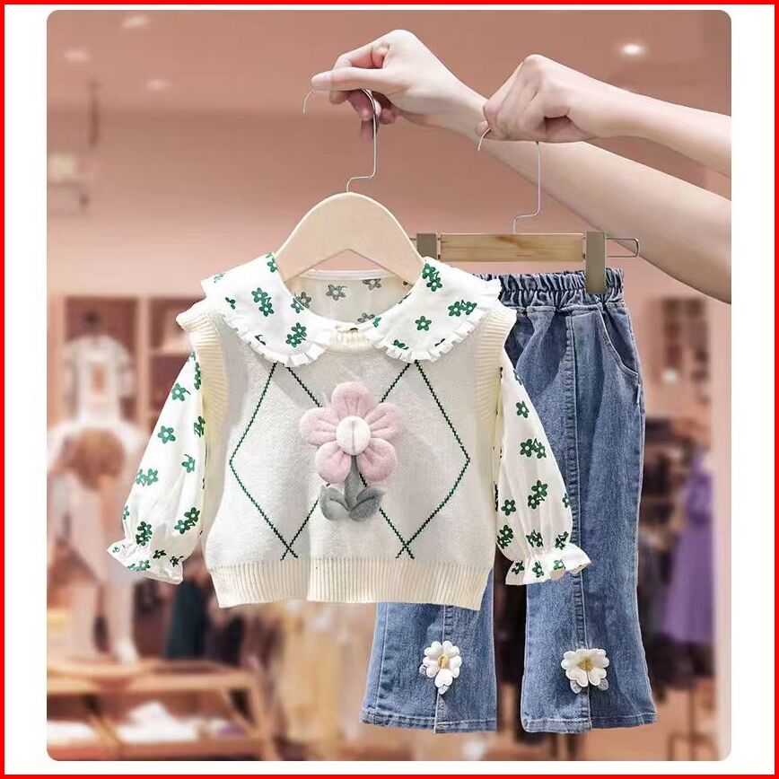 Baju Setelan Knit 2in1 Premium Anak Perempuan Usia 1-4thh Baju Jeans Set