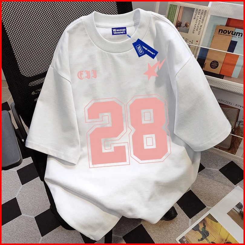 Kaos Musim Panas Dengan Motif Angka 28 Elemen Keren Katun Berkualitas Oversize Bernapas