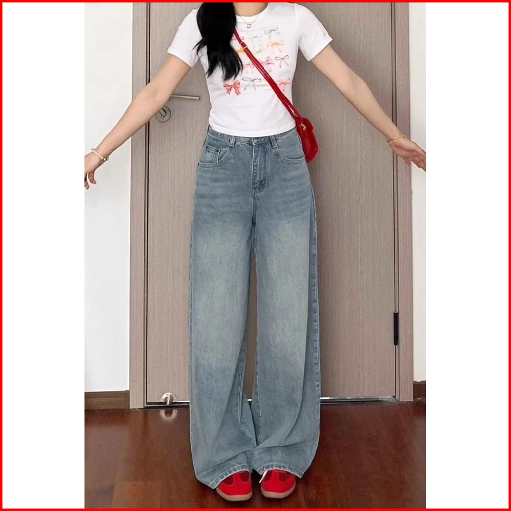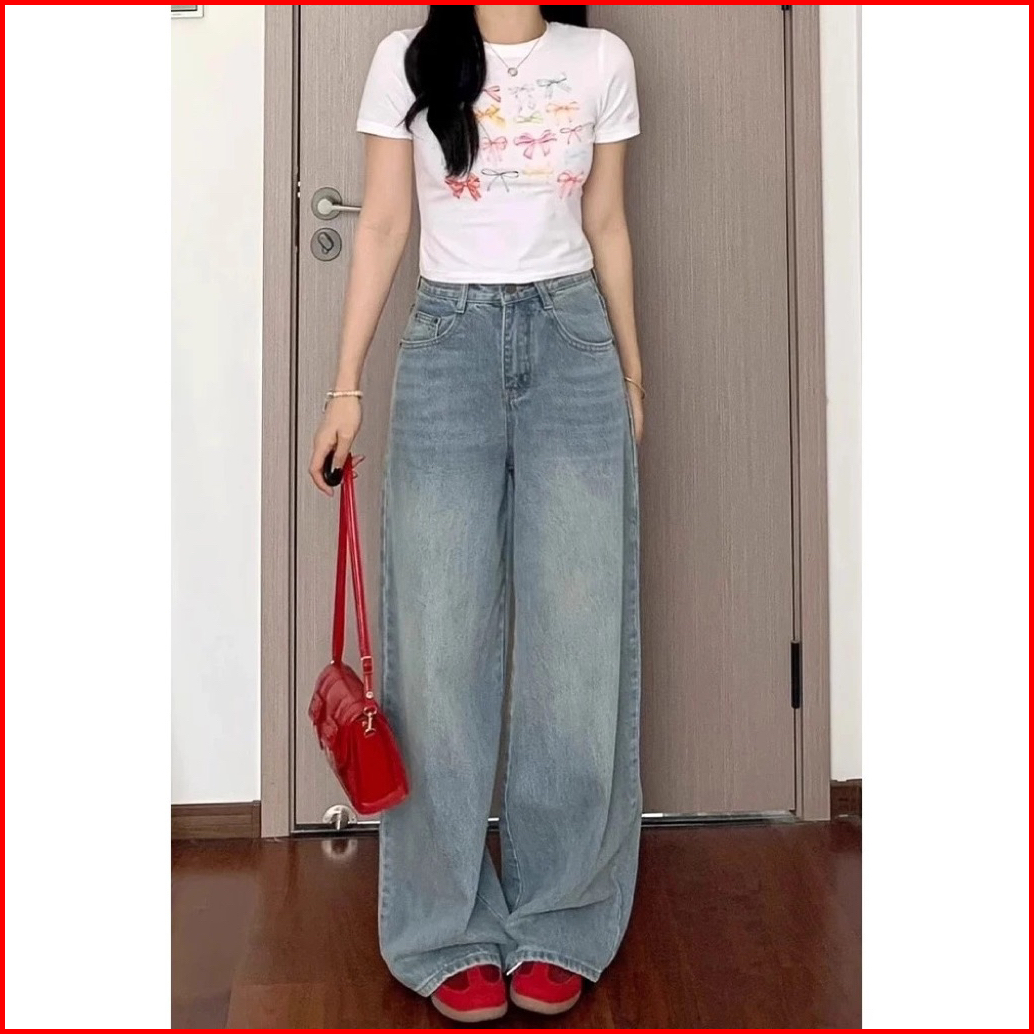Lulu Jeans Celana Jeans Terbaru Kulot Korea Biru Muda Pinggang Tinggi--baggy Jeans -baggy Baggy
