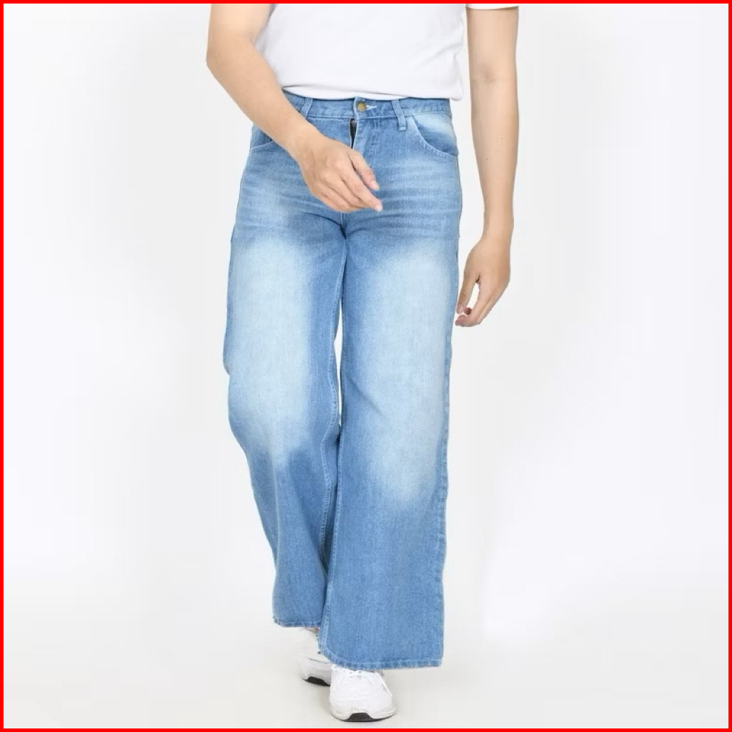 Celana Baggy Jeans Korean Style Whisker Wide Leg Skena Loose Fit