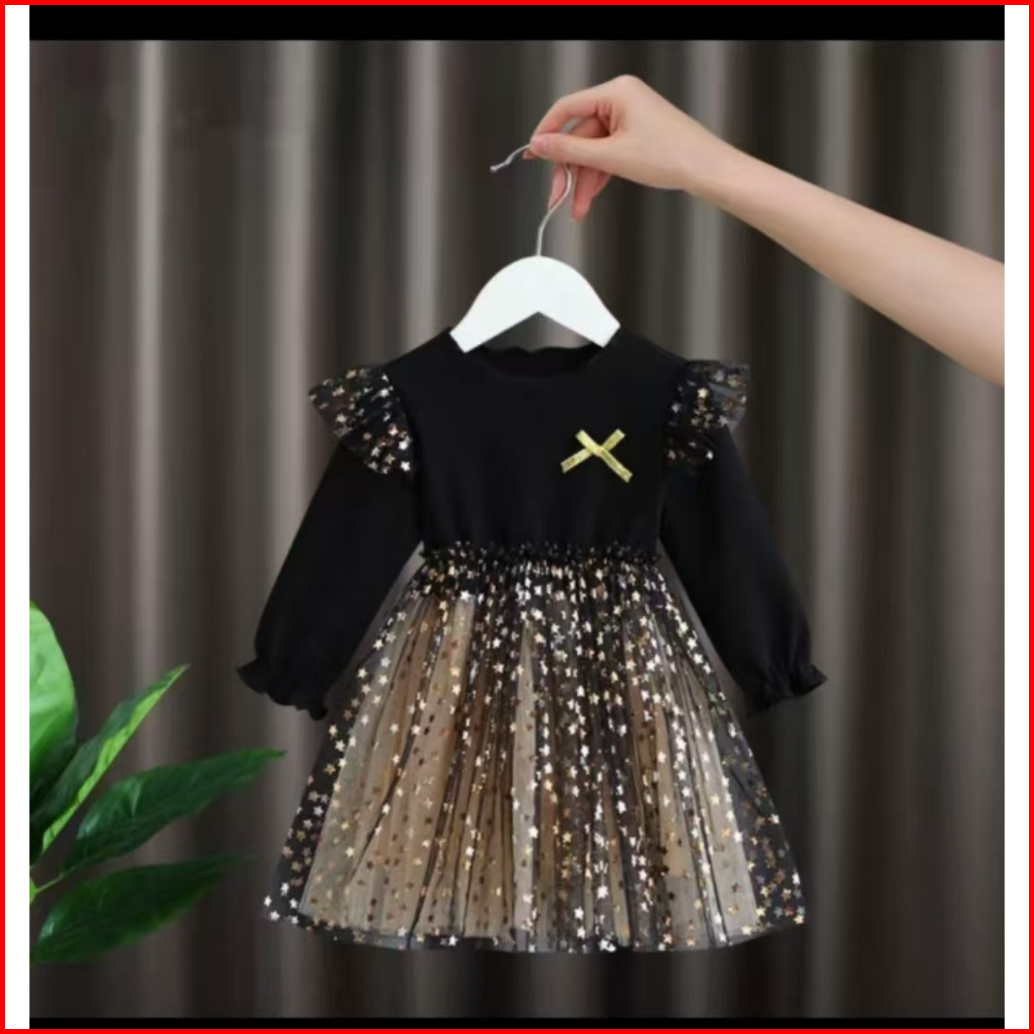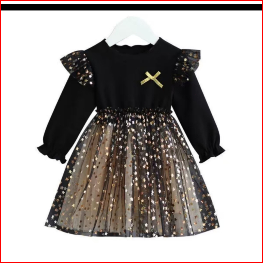 Dress Anak Hitam Import Size 1-6thn Black Star Tutu Lembut Dress Tutu Anak Hitam Lengan Panjang