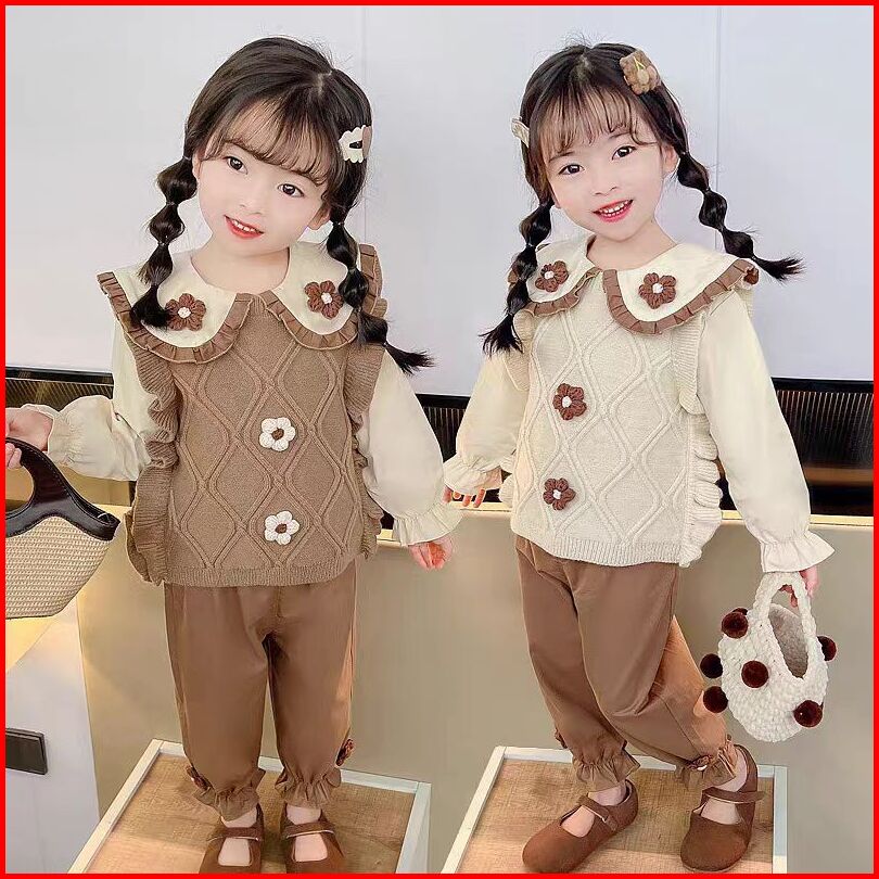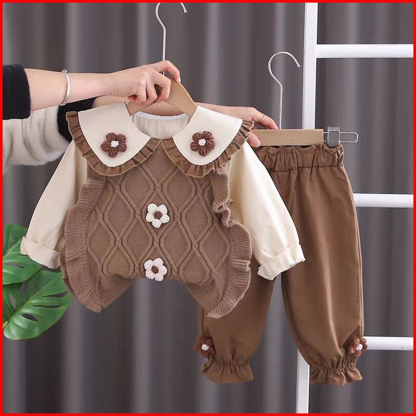 Baju Setelan Anak Perempuan Usia 1-4thn One Set Knit Anak Motify Bunga Casua Lstyle