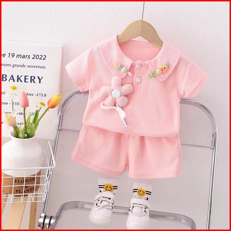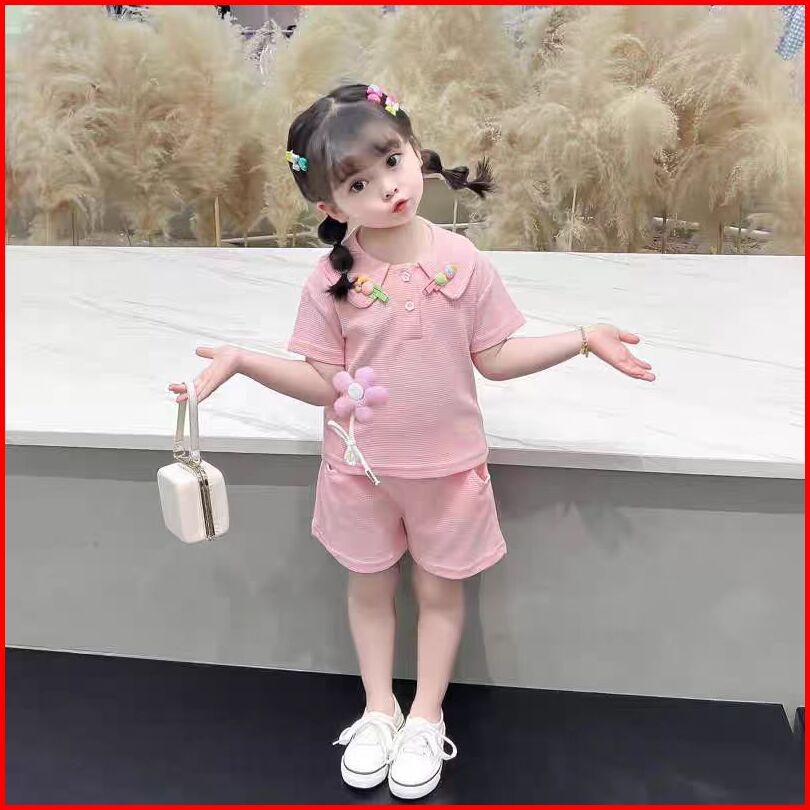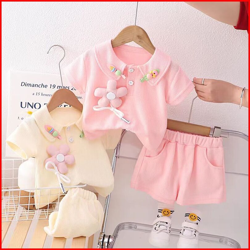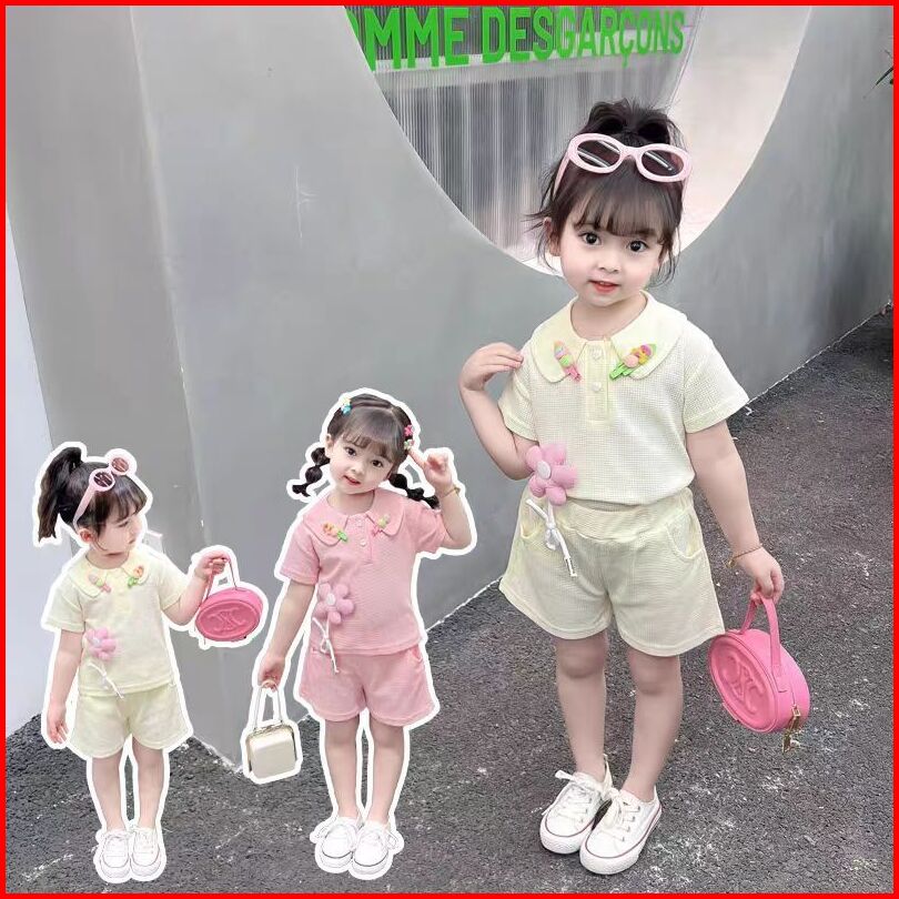 Setelan Kaos Anak Perempuan Premium Stelan Baju Lengan Pendek Motify Bunga Usia 1-5thn