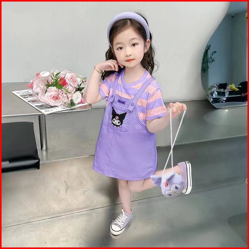 Baju Setelan Anak Perempuan Usia 1-5th Dress Kuromi Anak Free Tas Baju Kuromi Anak Perempuan