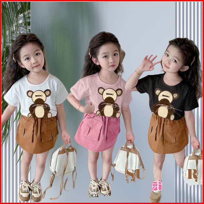 Baju Setelan Rok Anak Perempuan Usia 1-5thn Setelan Rok Cargo Style Korea Anak Cewek Import Setelan Baju Dan Rok Anak Pe
