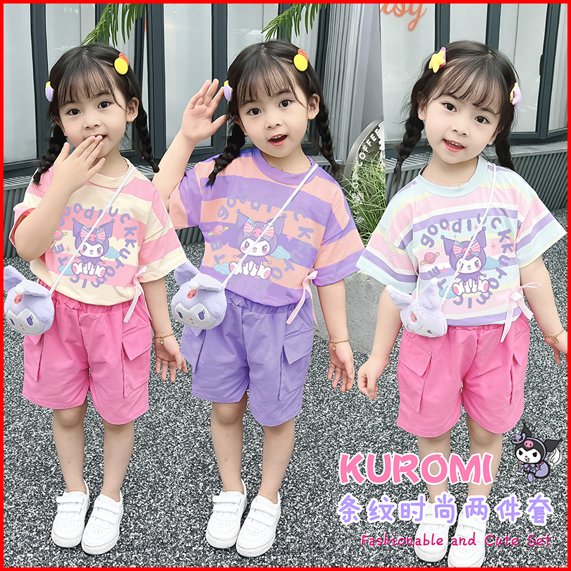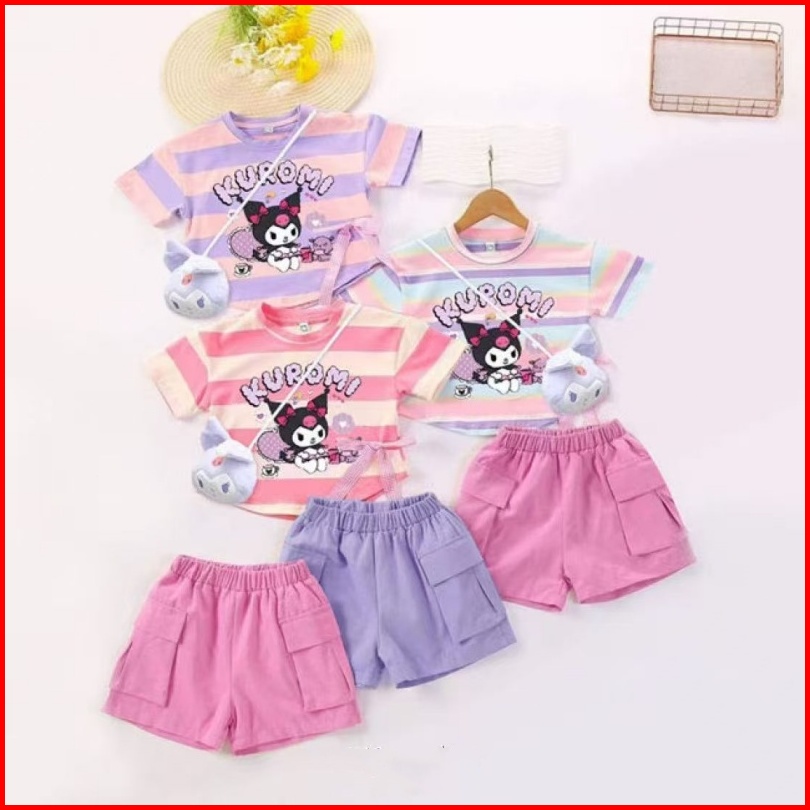 Setelan Cargo Anak Perempuan Setelan Kuromi Anak Perempuan Usia 1-4thn Stelan Kuromi Anak Perempuan Setelan Kuromi Anak