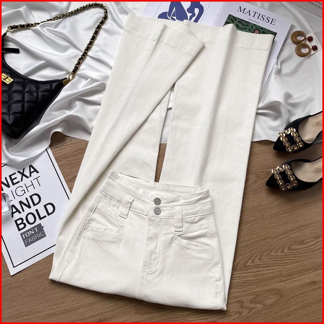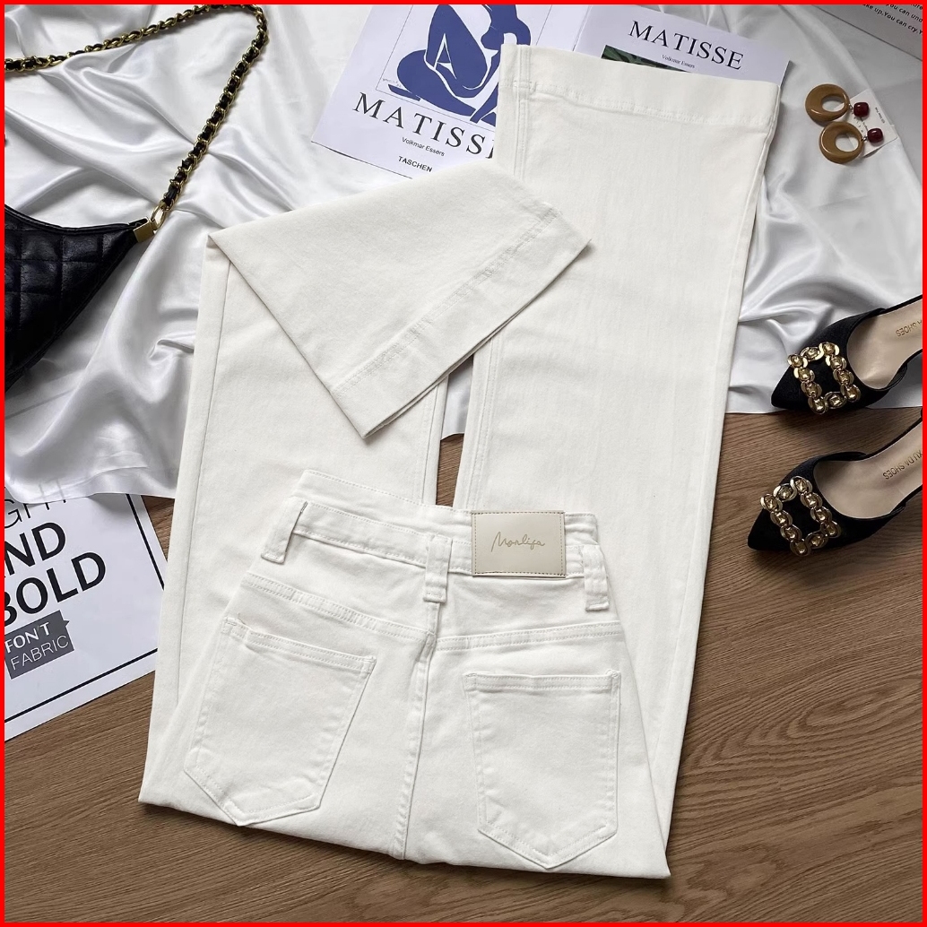 Elegan.girl Warna Putih Highwaist Loose Kasual Celana Jeans Panjang Wanita Celana Jeans Wanita Korean Style Jeans High W
