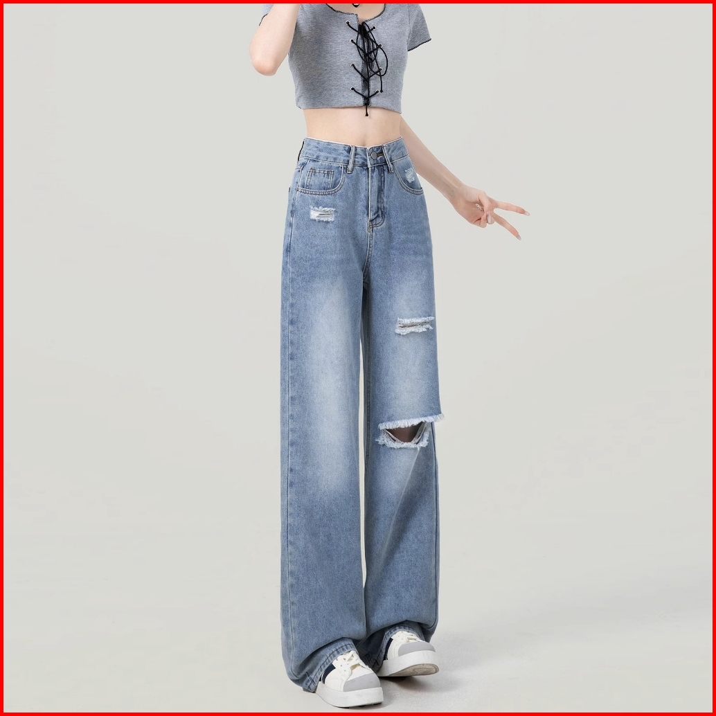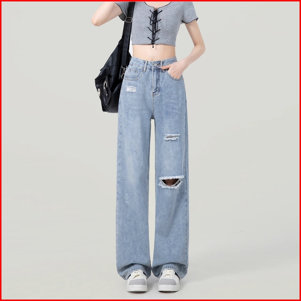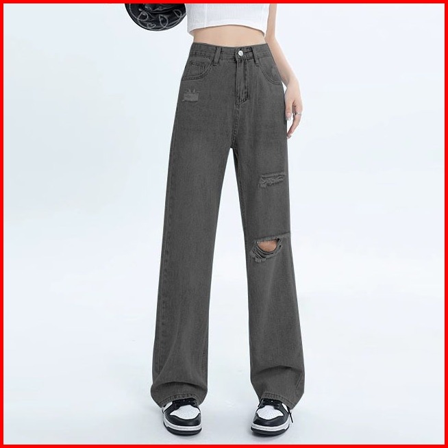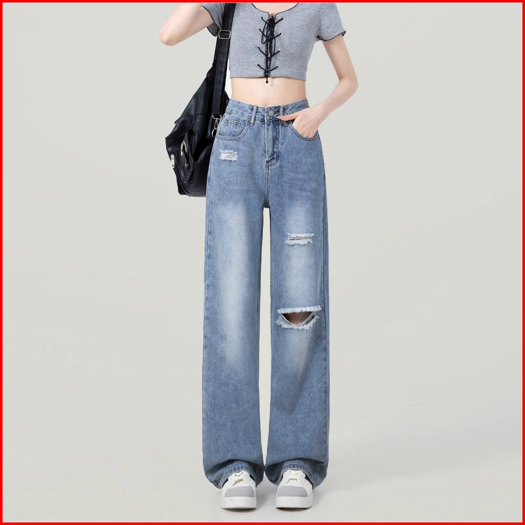 Elegan.girl Ready Stok Celana Jeans High Waist Kekinian Jeans Korean Style Celana Jeans Longgar Wanita Oversize Jeans Pi