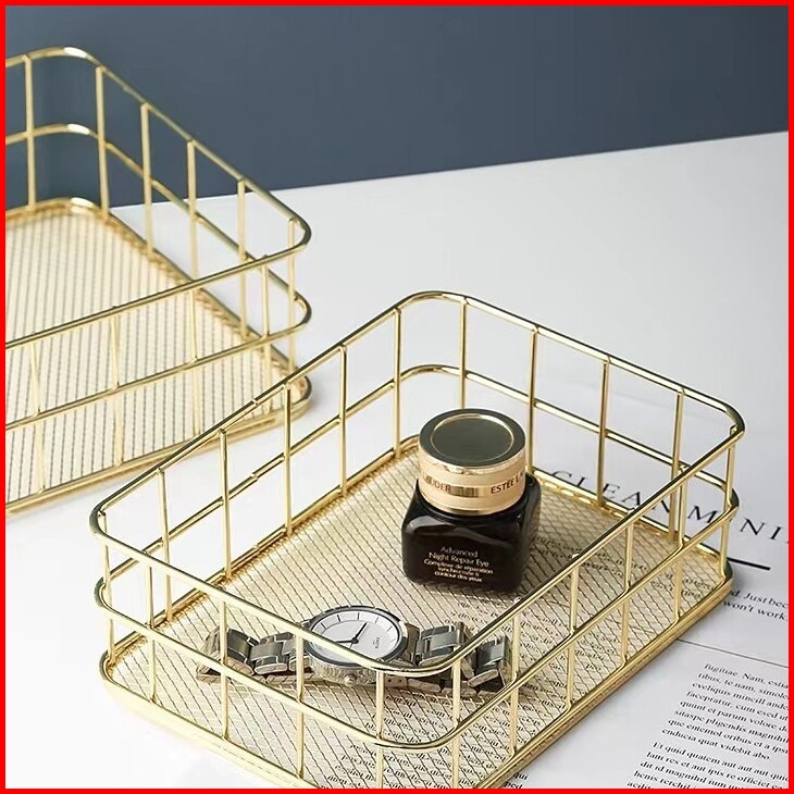 Box Keranjang Makeup Storage Kosmetik Tempat Organizer Besi Basket Metal Iron Mesh Brush Holder Dekorasi Penyimpanan Ker