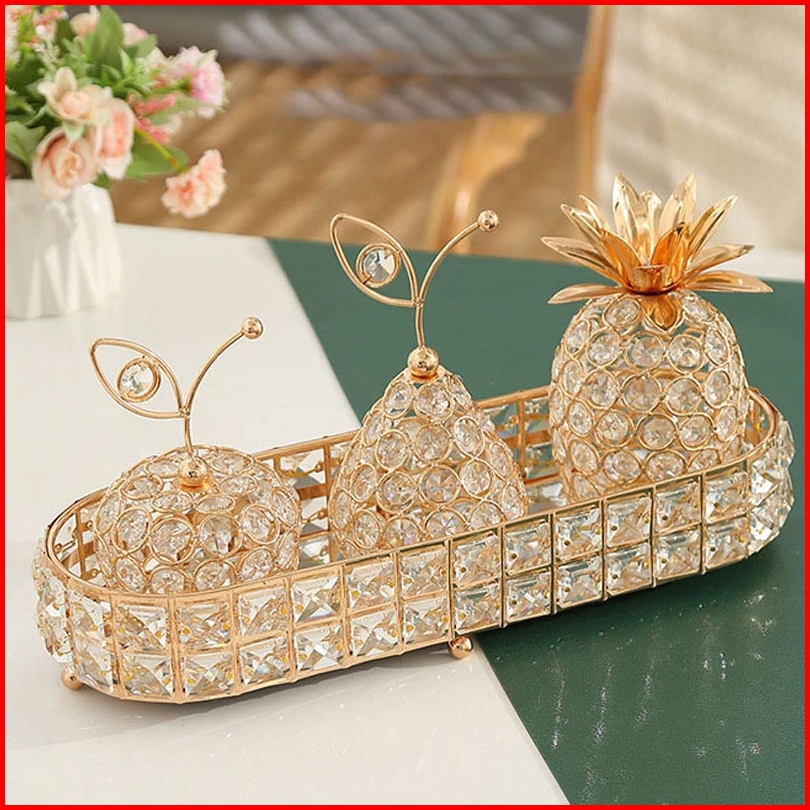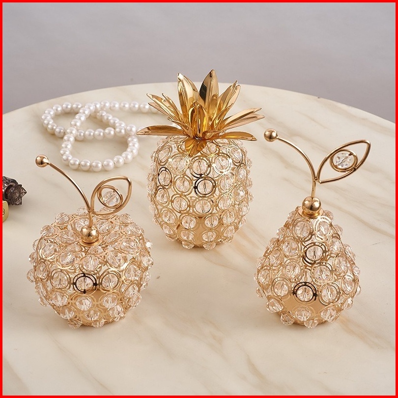 Optivia Ornamen Kristal Buah Dekorasi Ruang Tamu Kristal Crystal Nanas Pear Apple Pajangan Mewah Swarlovsky