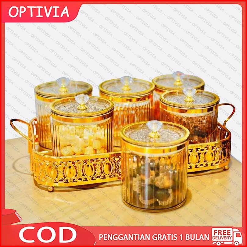 Optivia Snack Tray Kue Storage Jar Snack Bowl Tempat Saji Snack Cemilan Kotak Makanan Toples Lebaran Set Nampan Topless