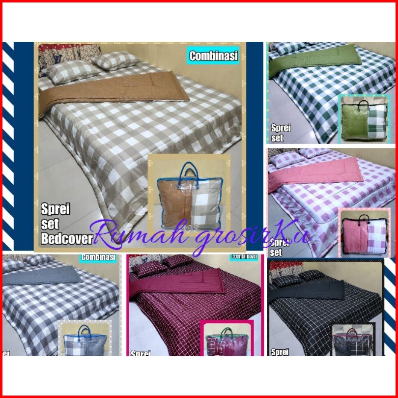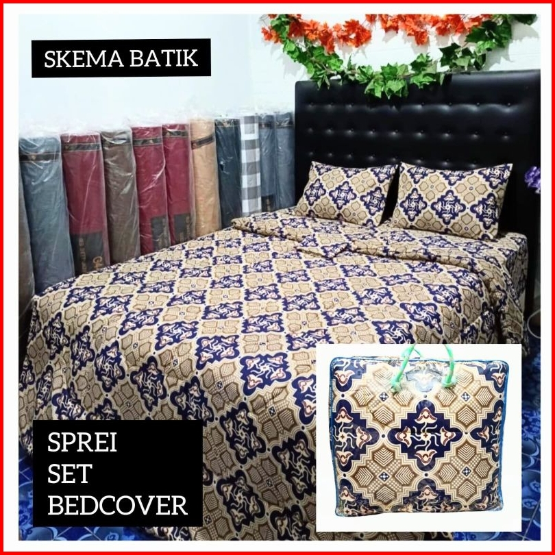 Bedcover Set Batik Sprei Kotak2 Kekinian Selimut Terlaris