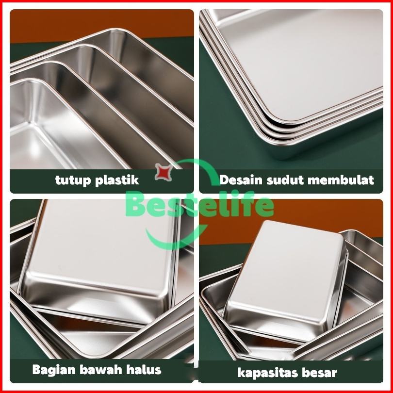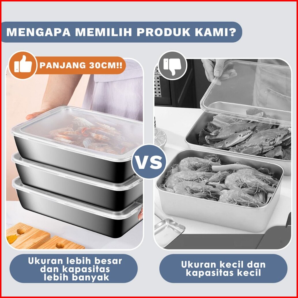 Codhomelix Crisper Baja Tahan Karat Ekstra Besar Stainless 304 Kotak Kontainer Makanan Kulkas Baki Stainless Steel Cocok