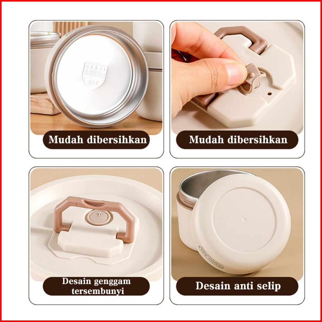 Codhomelix Kotak Makan Portable Tahan Panas Container Sealed Round Stainless Lunch Box Tahan Bocor Peralatan Makan Grati