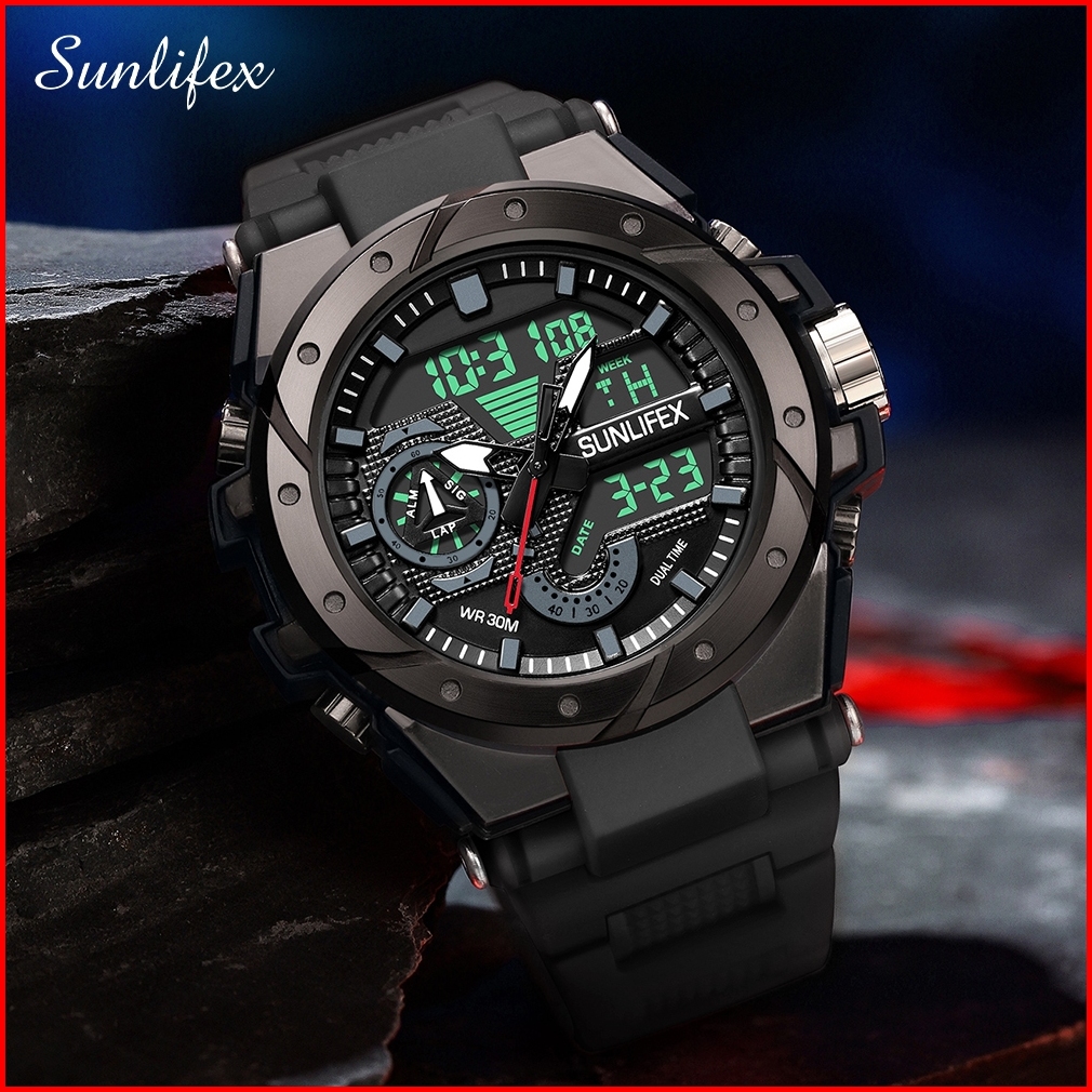 Sunlifex Jam Tangan Pria D009 Digital Analog Tali Silikon Chronograph Olahraga Jam Tangan Cowok