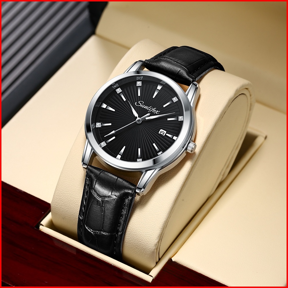 Sunlifex Jam Tangan Pria Kuarsa Anti Air Pria Tali Kulit Bisnis Mode Kalender Jam Tangan Cowok
