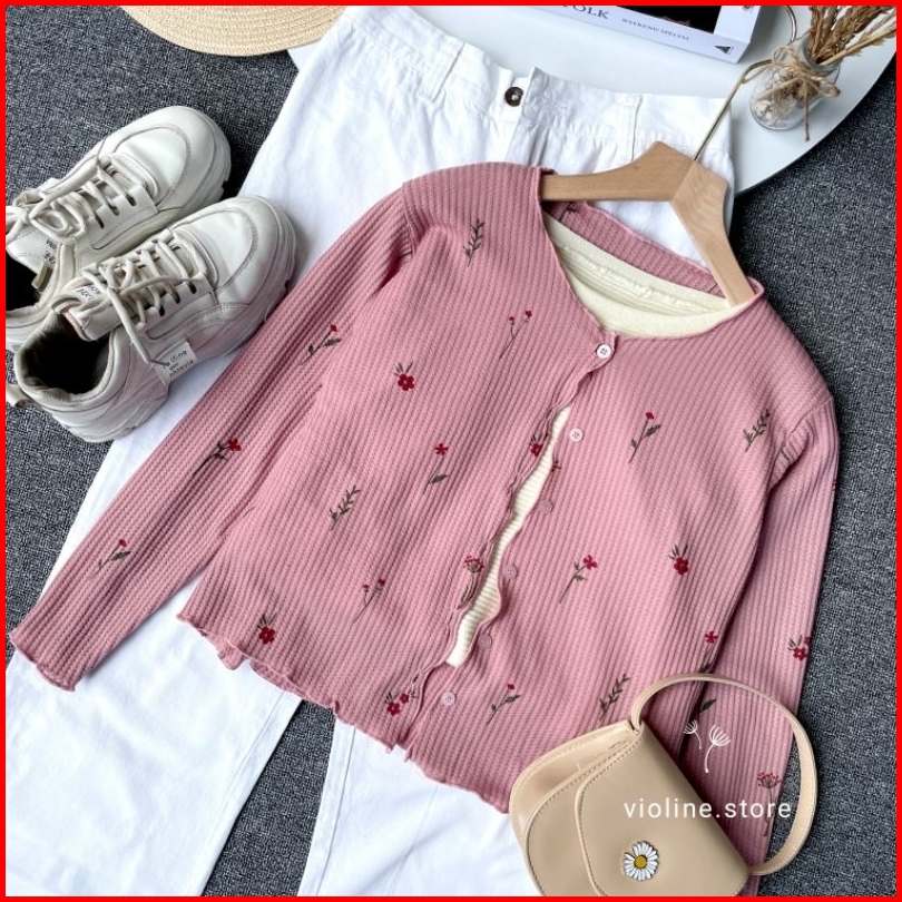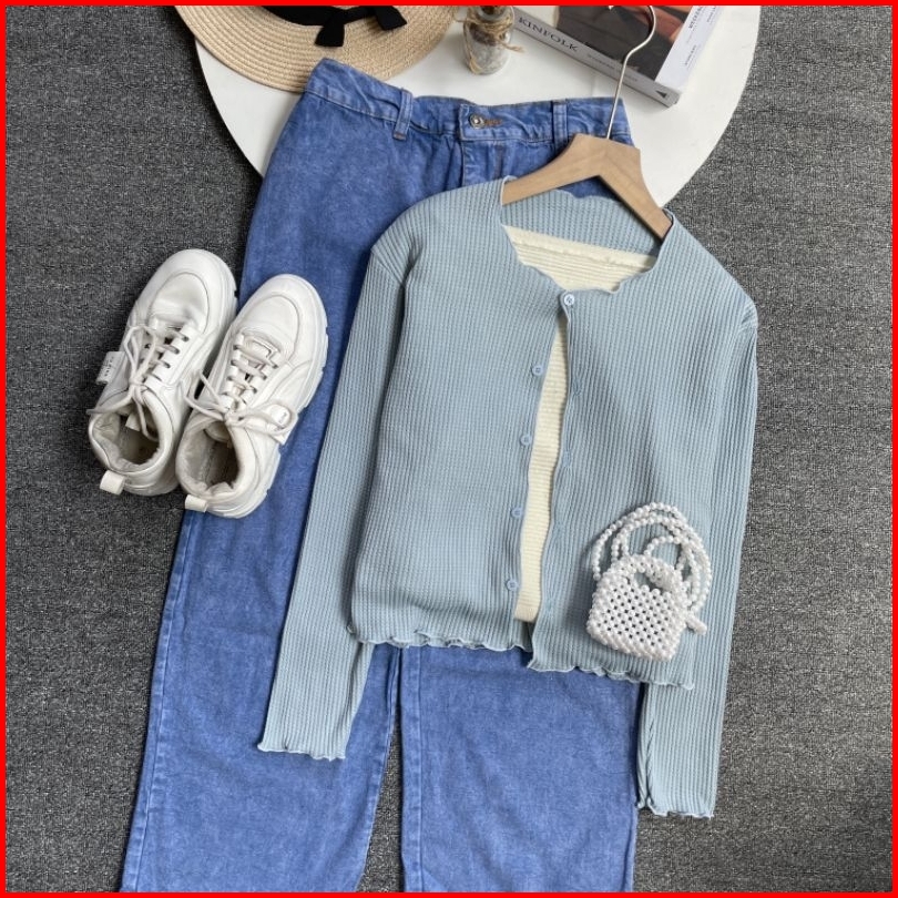 Violine Store - Oneset Setelan Wanita Remaja Kekinian Setelan Celana Panjang Cardi Rajut Bunga Celana Kulot Jeans Fit To