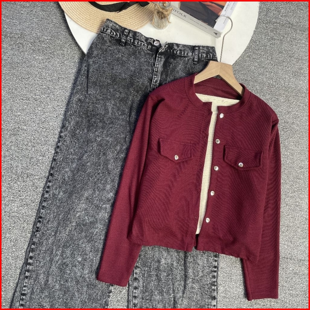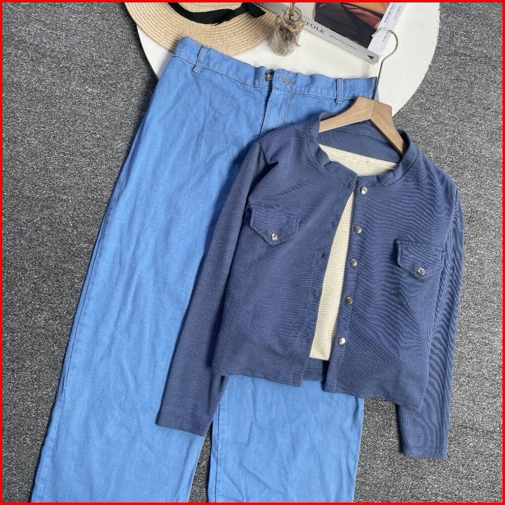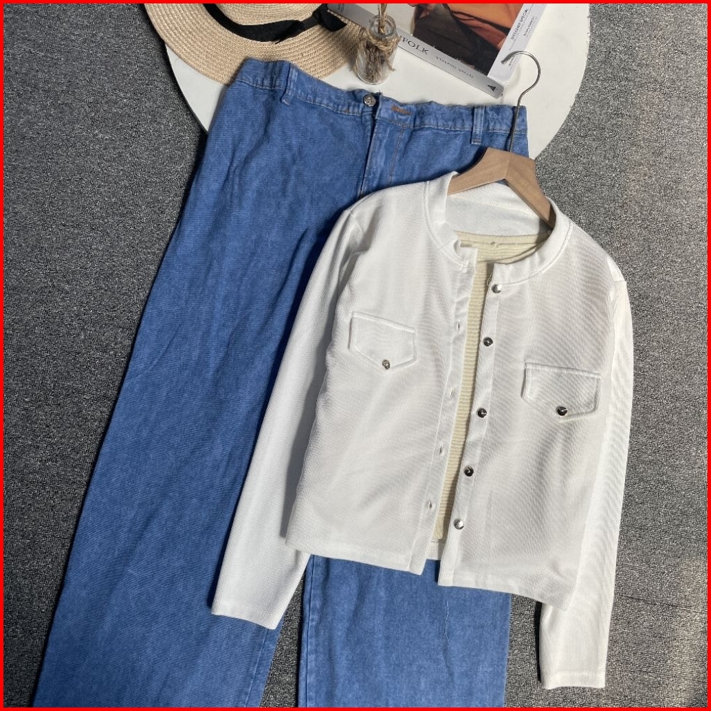 Violine.store - One Set Remaja Wanita Kekinian Korean Style Atasan Knit Pocket Bawahan Jeans Premium Outfit Hangout Ngan