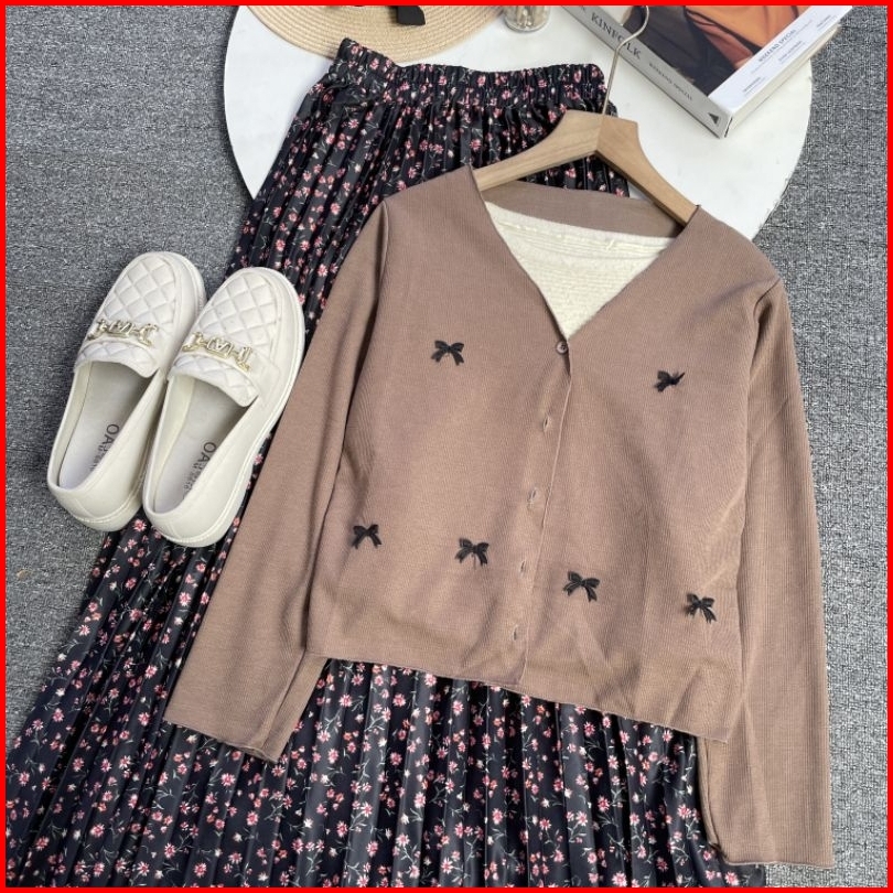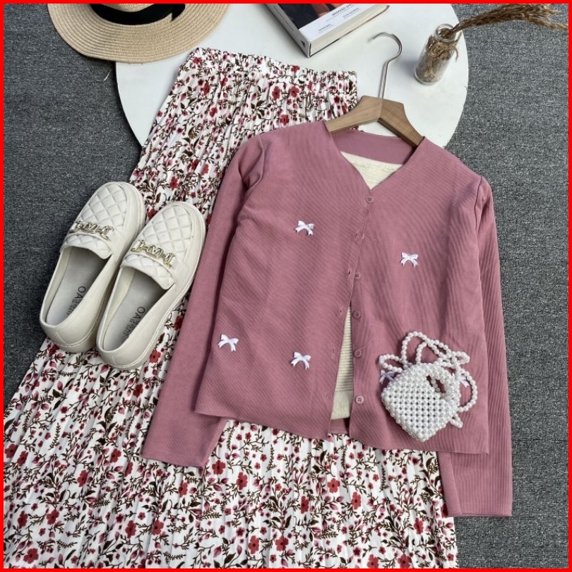 Violine Store - Oneset Setelan Wanita Remaja Kekinian Setelan Celana Panjang Cardi Pita Coquette Rok Hel Motif Terbaru K