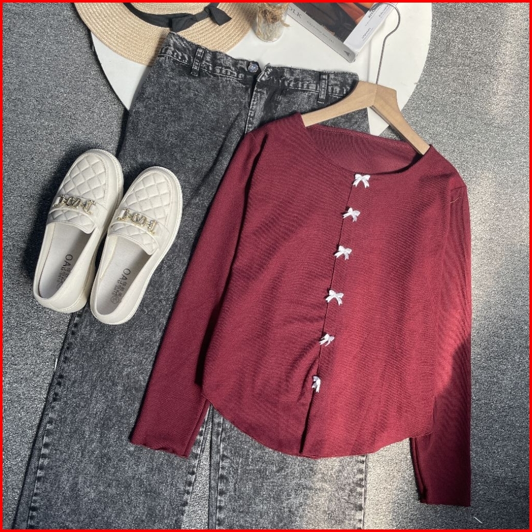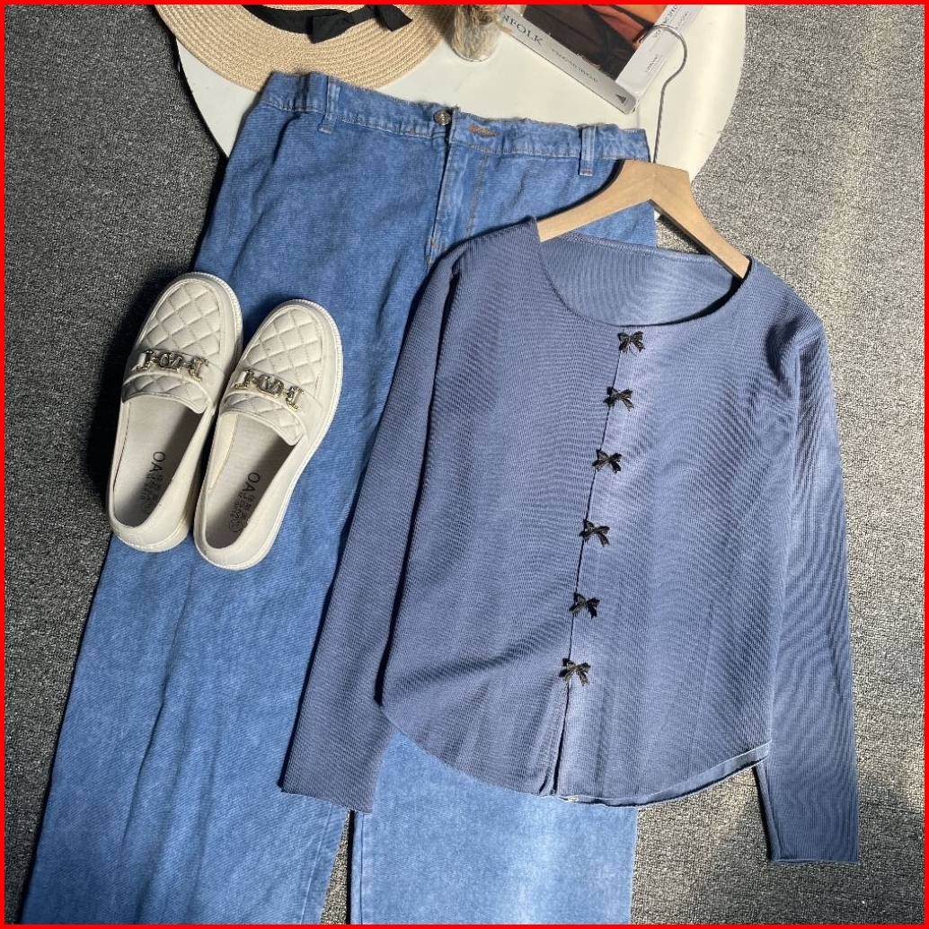 Violine Store - Oneset Setelan Wanita Remaja Kekinian Setelan Celana Panjang Kaos Pita Coquette Lurus Celana Kulot Jeans