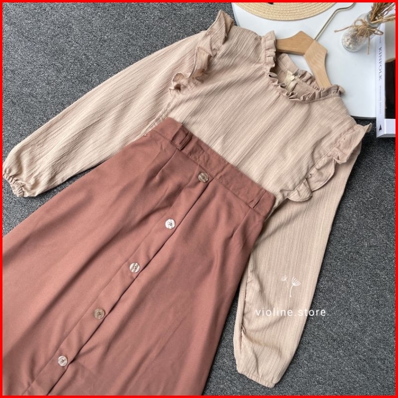 Violine Store - Oneset Setelan Wanita Remaja Kekinian Rok Panjang Ootd Murah Kekinian Terbaru 2025 Korean Style